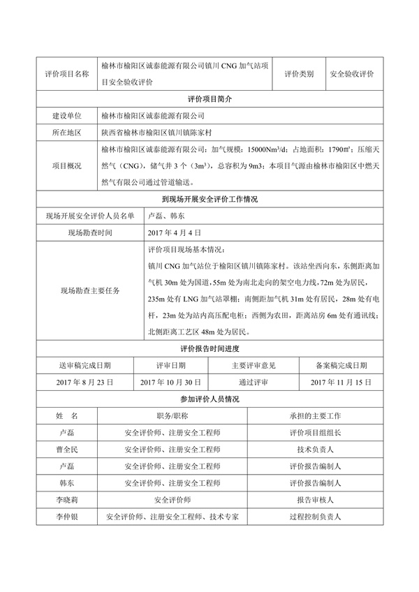 榆林市榆陽區(qū)誠泰能源有限公司鎮(zhèn)川CNG加氣站項(xiàng)目安全驗(yàn)收評(píng)價(jià)