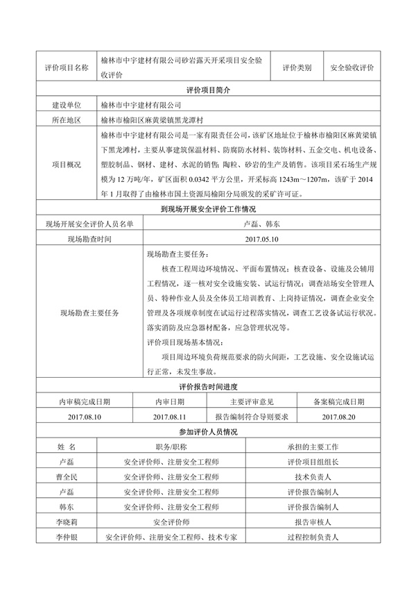 榆林市中宇建材有限公司砂巖露天開采項(xiàng)目安全驗(yàn)收評(píng)價(jià)