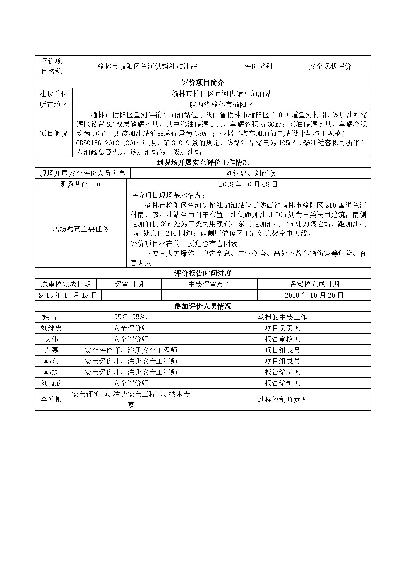 榆林市榆陽區(qū)魚河供銷社加油站安全現(xiàn)狀評價(jià)