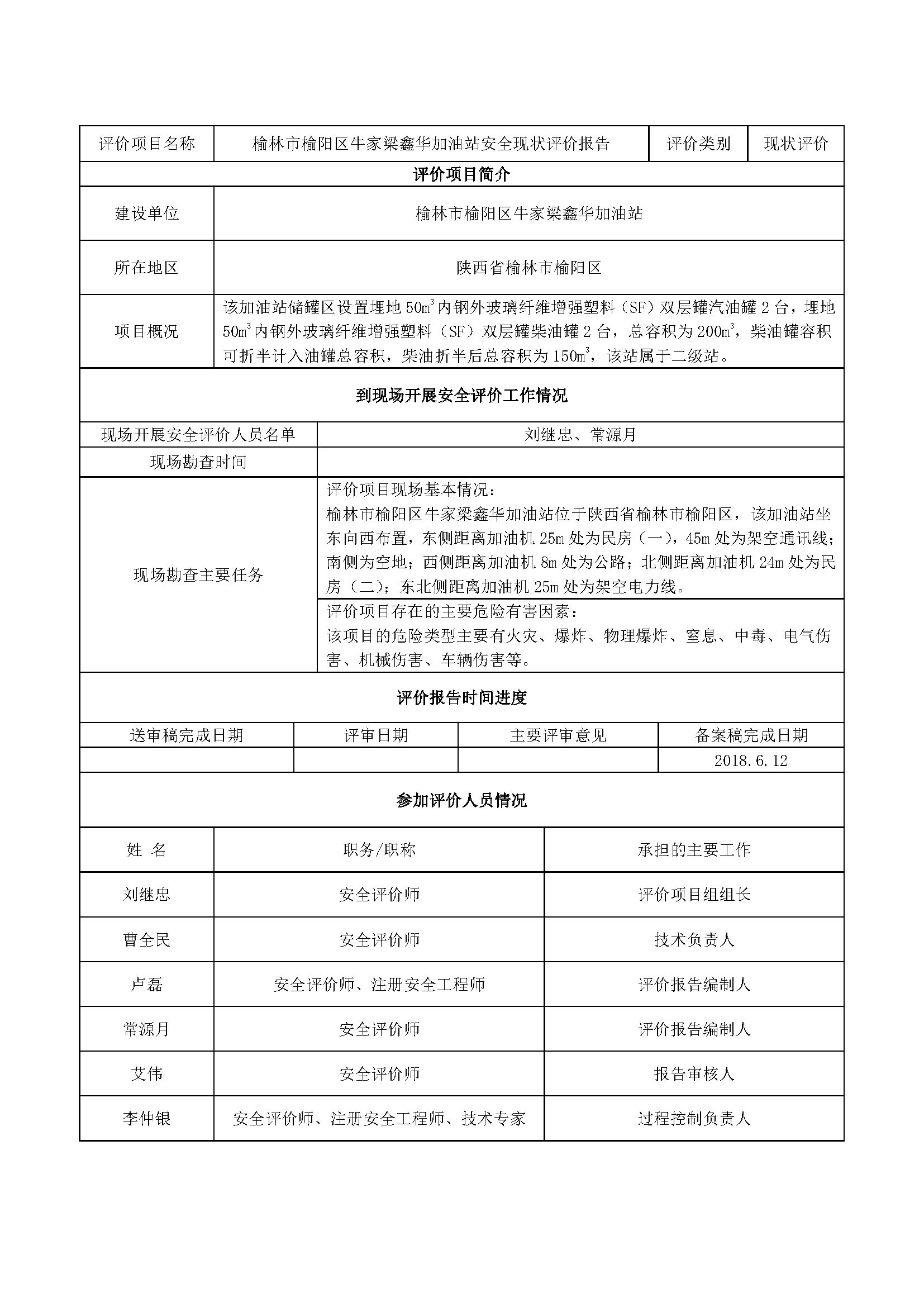 榆林市榆陽(yáng)區(qū)牛家梁鑫華加油站安全現(xiàn)狀評(píng)價(jià)