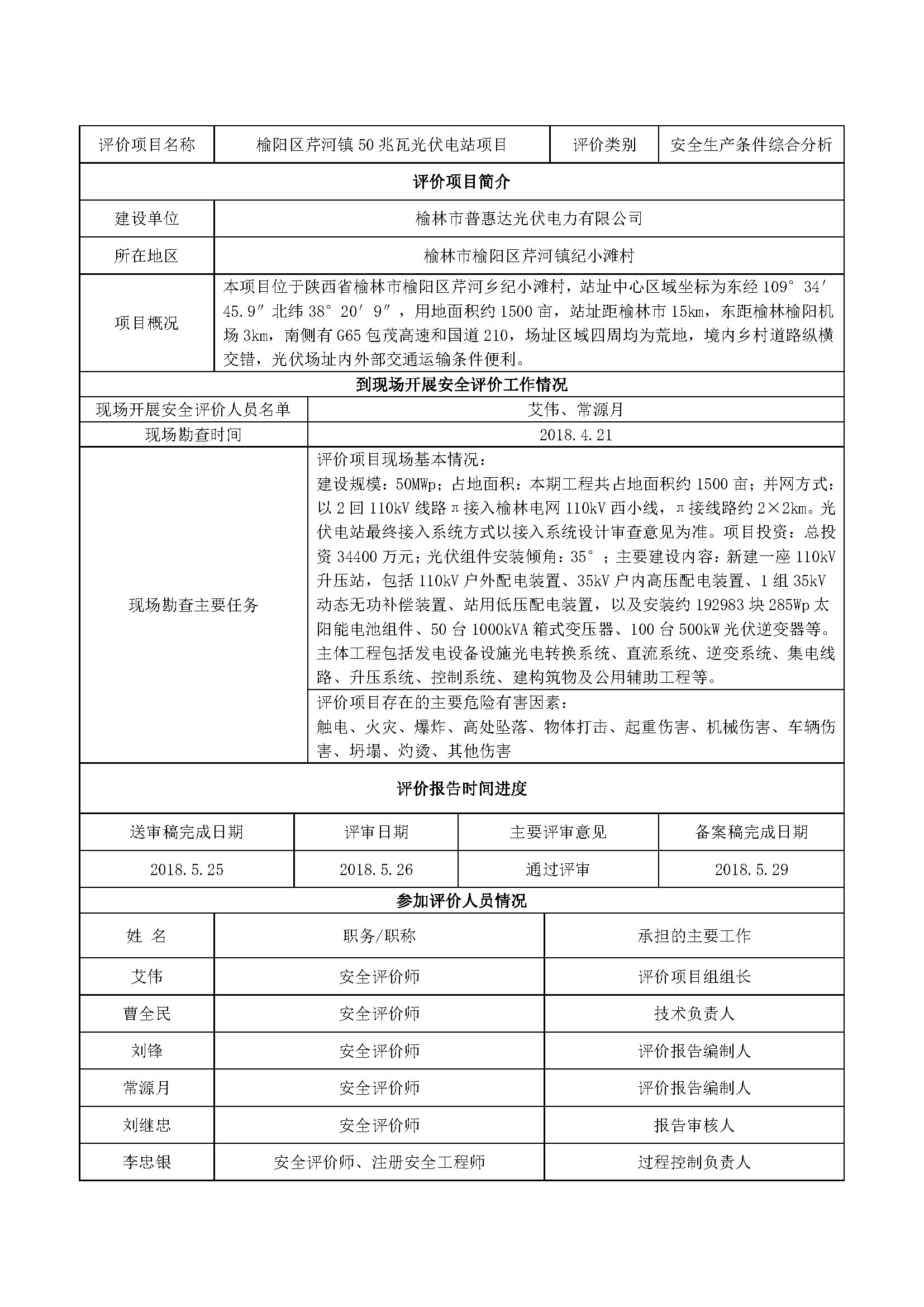 榆林市普惠達光伏電力有限公司榆陽區(qū)芹河鎮(zhèn)50兆瓦光伏電站項目安全條件綜合分析