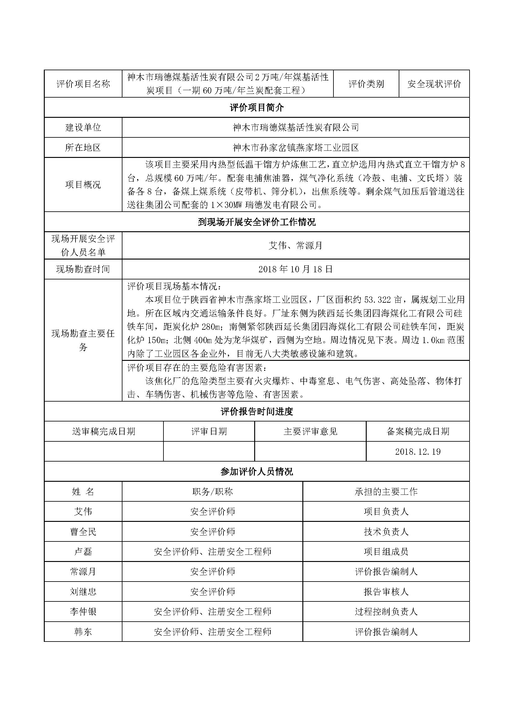 神木市瑞德煤基活性炭有限公司2萬(wàn)噸年煤基活性炭項(xiàng)目(一期60萬(wàn)噸年蘭炭配套工程)安全現(xiàn)