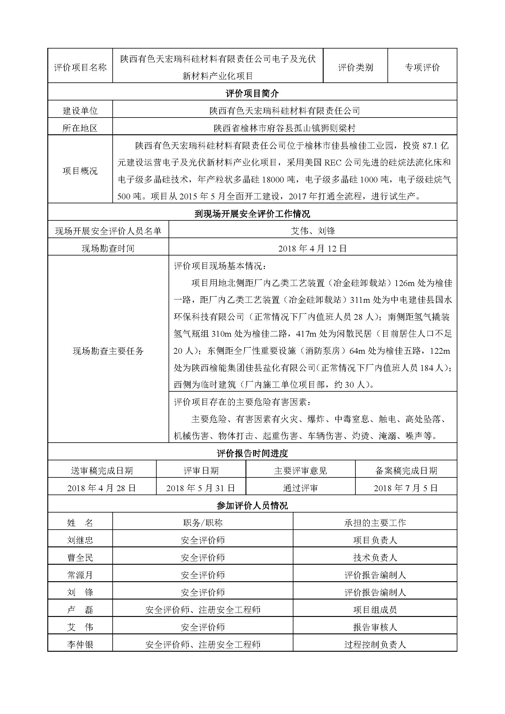 陜西有色天宏瑞科硅材料有限責(zé)任公司電子及光伏新材料產(chǎn)業(yè)化項目危險化學(xué)品重大危險源安