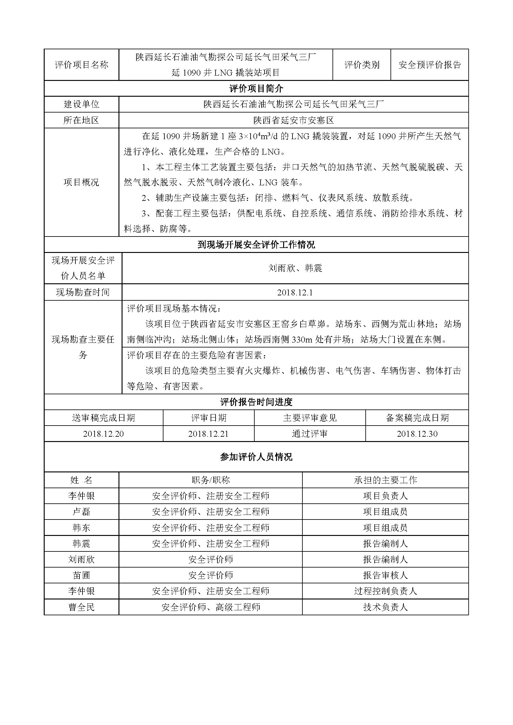 陜西延長(zhǎng)石油油氣勘探公司延長(zhǎng)氣田延1090井LNG撬裝站項(xiàng)目安全預(yù)評(píng)價(jià)