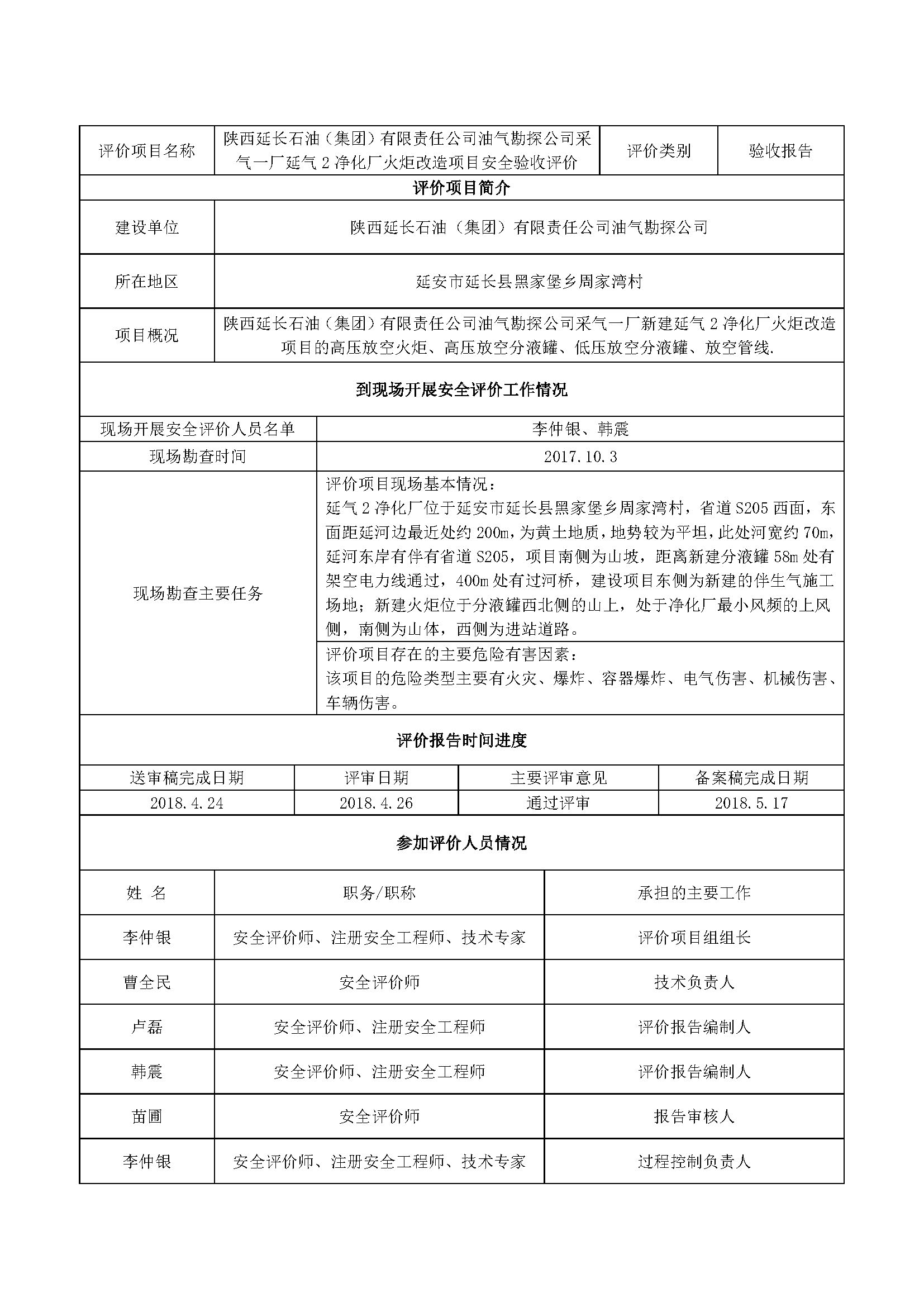 陜西延長(zhǎng)石油(集團(tuán))有限責(zé)任公司油氣勘探公司油氣勘探公司采氣一廠延氣2凈化廠火炬改造
