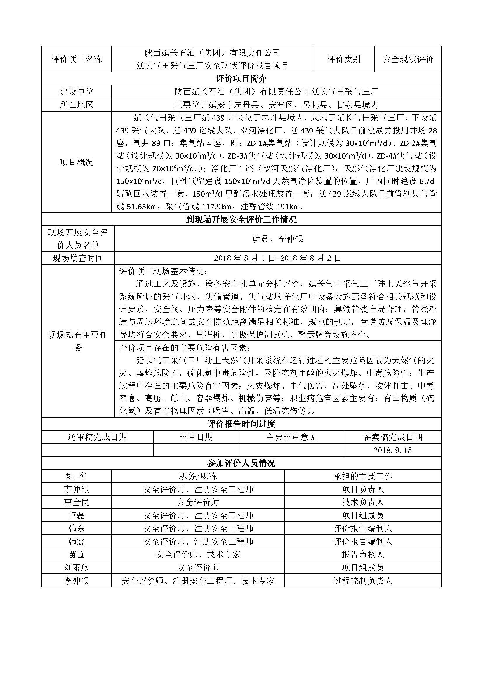 陜西延長石油(集團(tuán))有限責(zé)任公司延長氣田采氣三廠安全現(xiàn)狀評價報告
