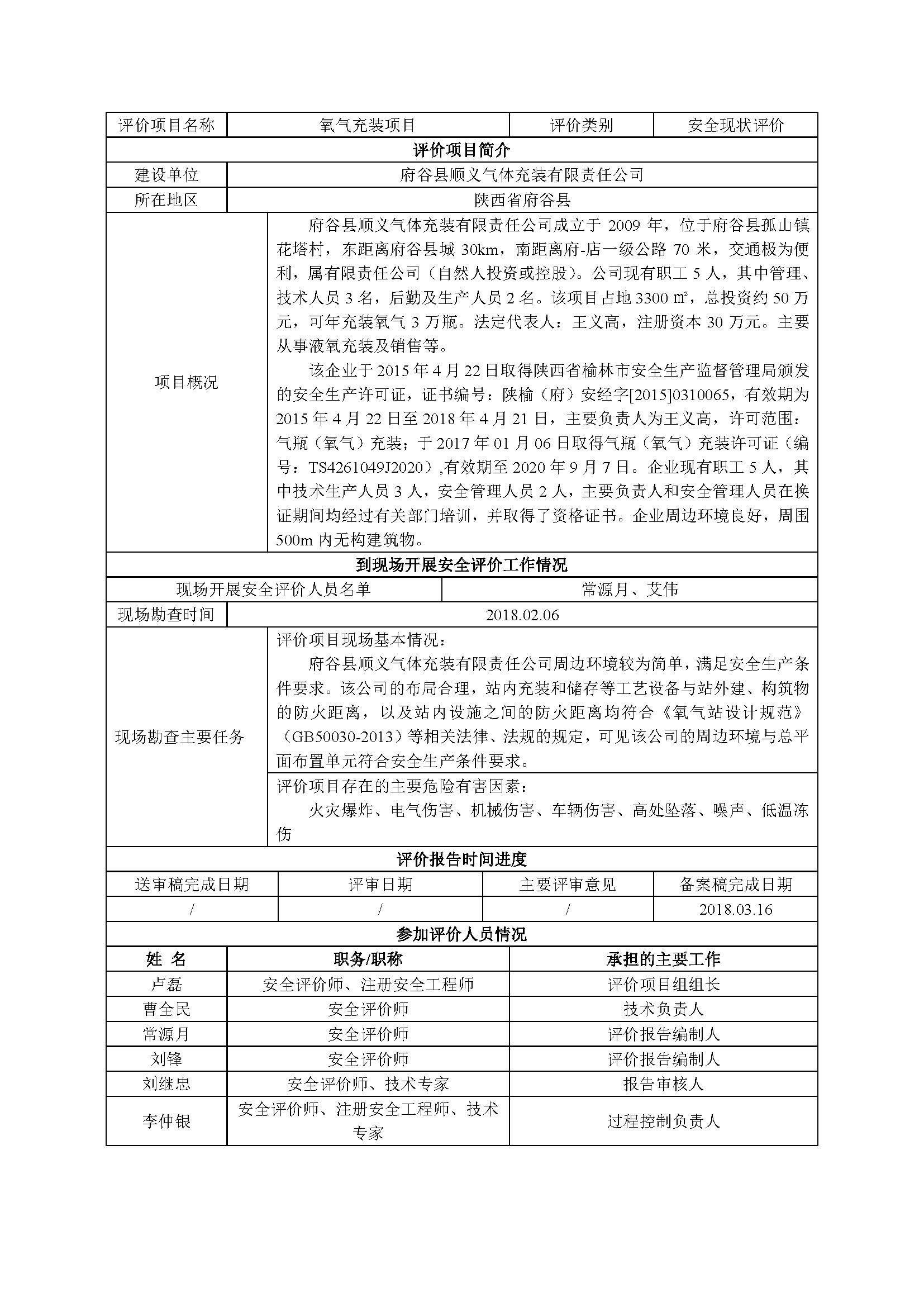 府谷縣順義氣體充裝有限責(zé)任公司氧氣充裝項(xiàng)目安全現(xiàn)狀評(píng)價(jià)