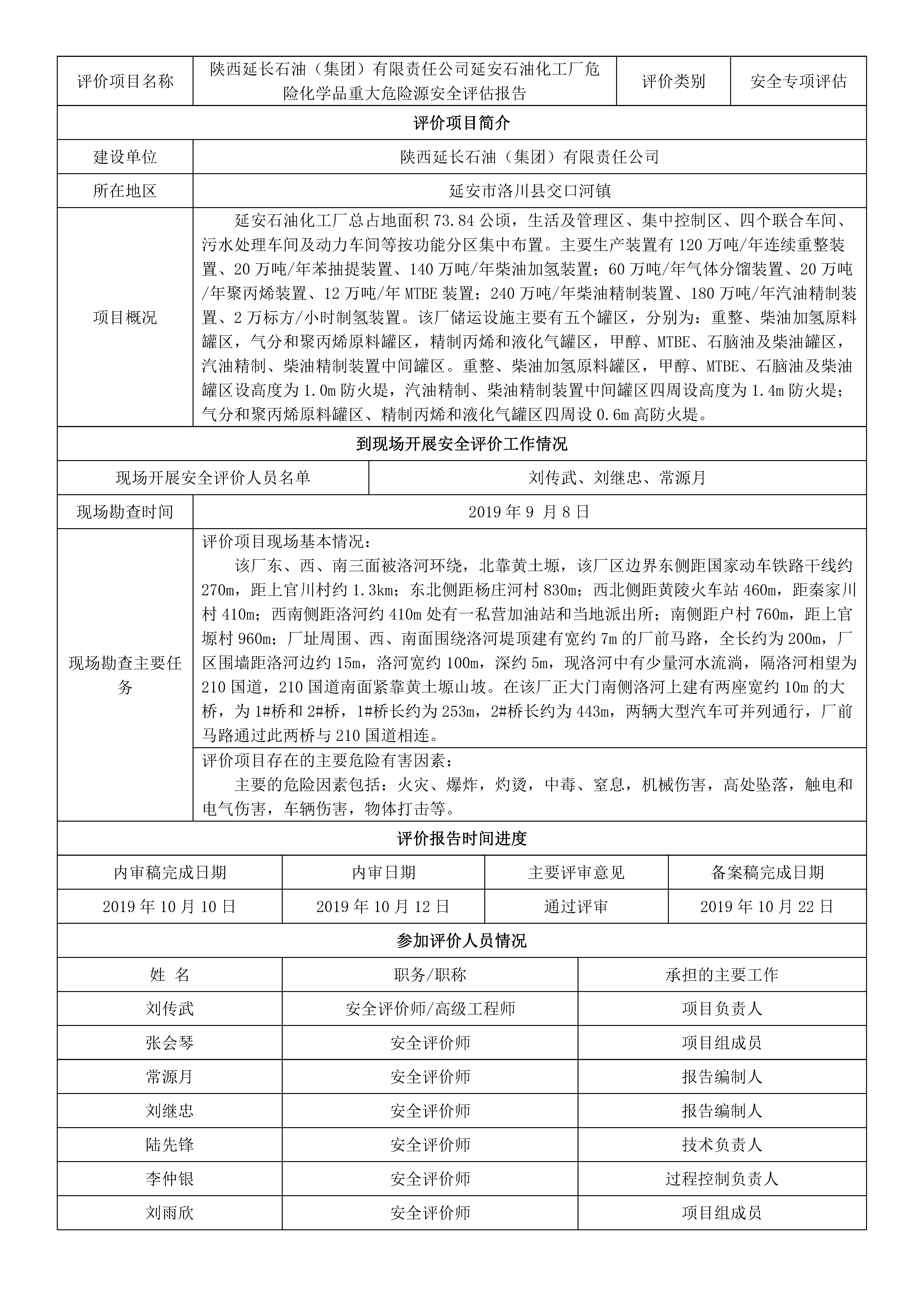 KLDAP[2019]-?;?重-12 陜西延長石油(集團)有限責任公司延安石油化工廠危險化學品重大危險源安全評估報告