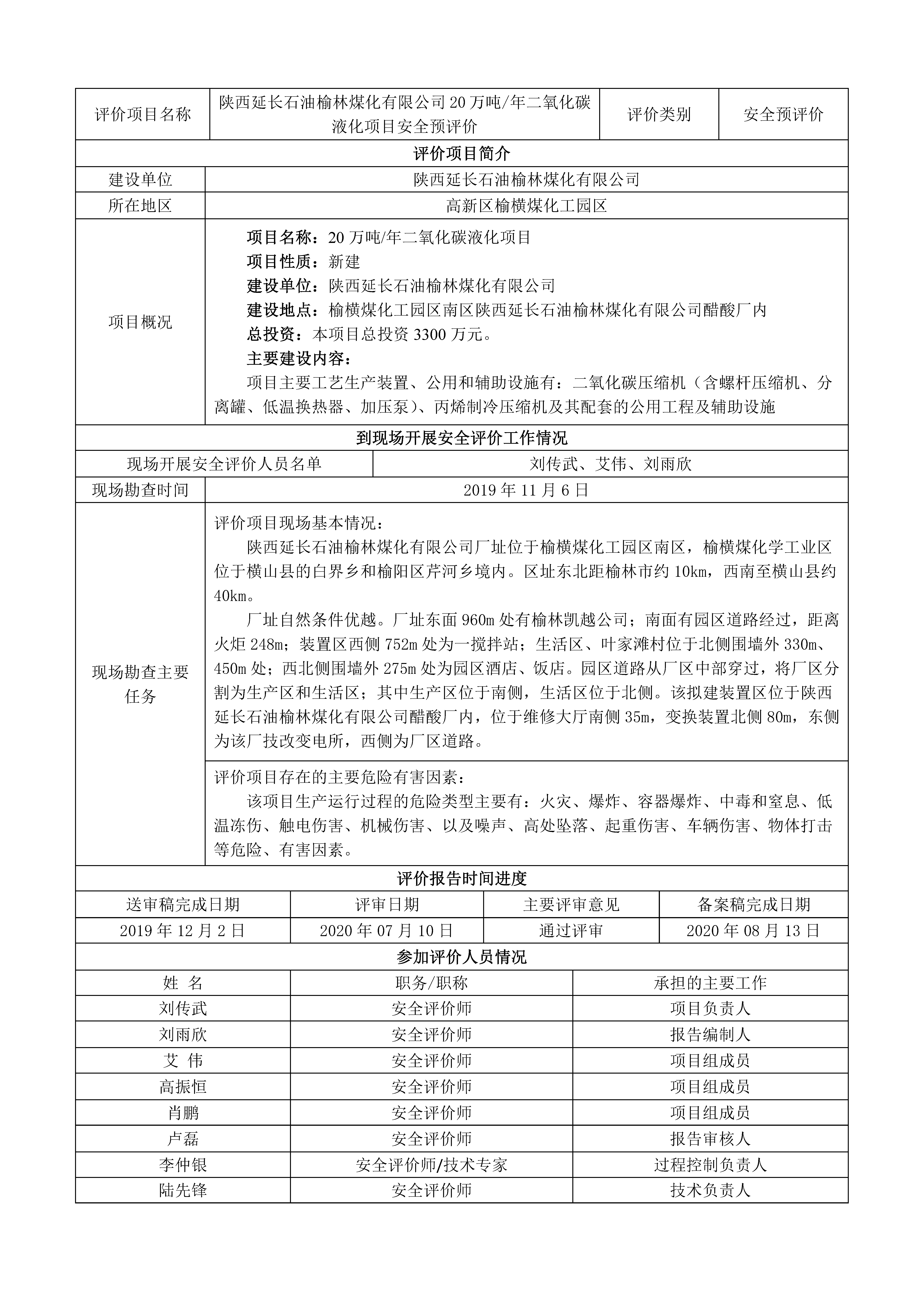 KLDAP[2019]-?;?預(yù)-10 延長石油榆林煤化有限公司榆林煤化公司二氧化碳液化項目預(yù)評價