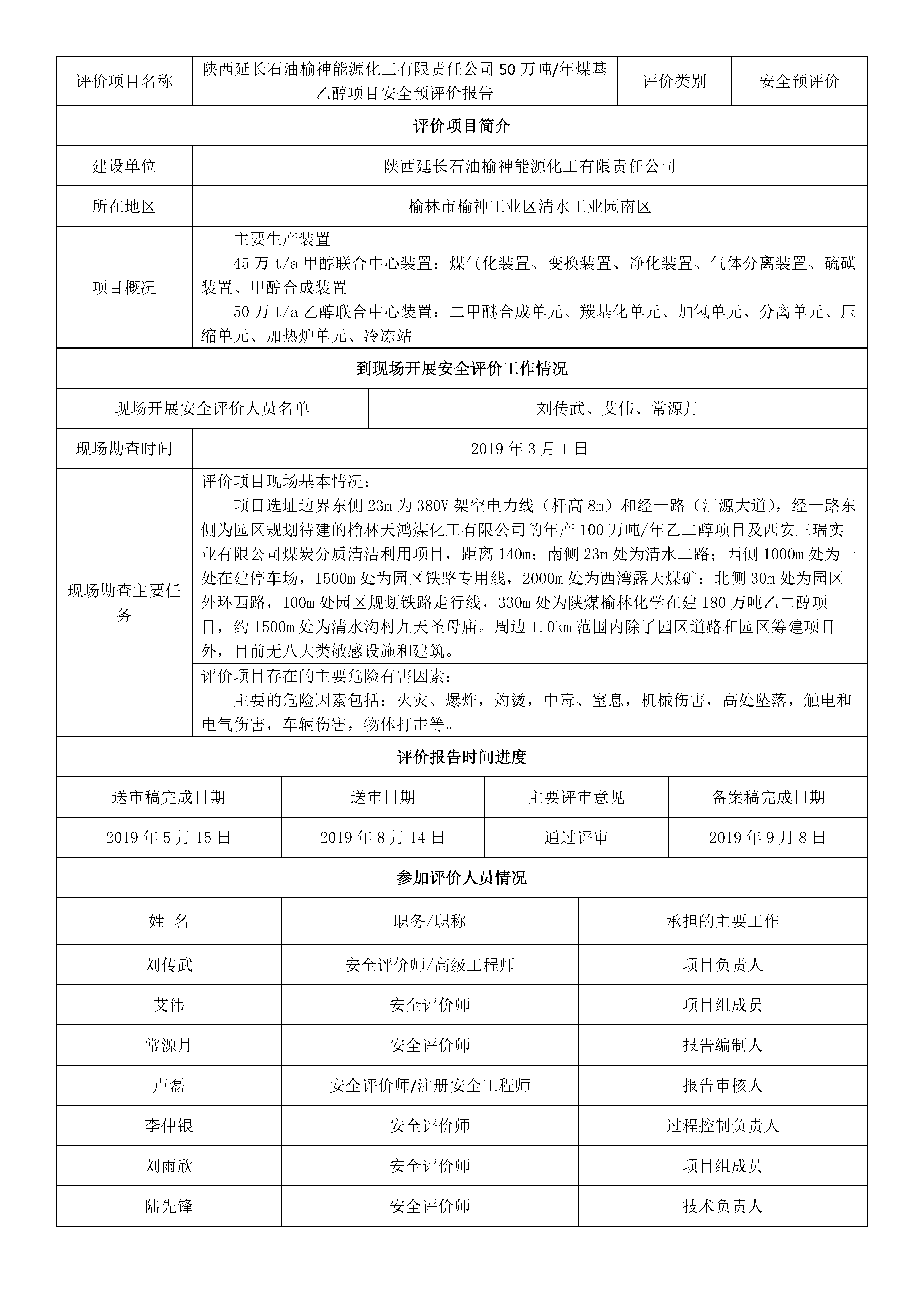 KLDAP[2019]-危化-預(yù)-2 陜西延長(zhǎng)石油榆神能源化工有限責(zé)任公司50萬(wàn)噸年煤基乙醇項(xiàng)目安全預(yù)評(píng)價(jià)報(bào)告