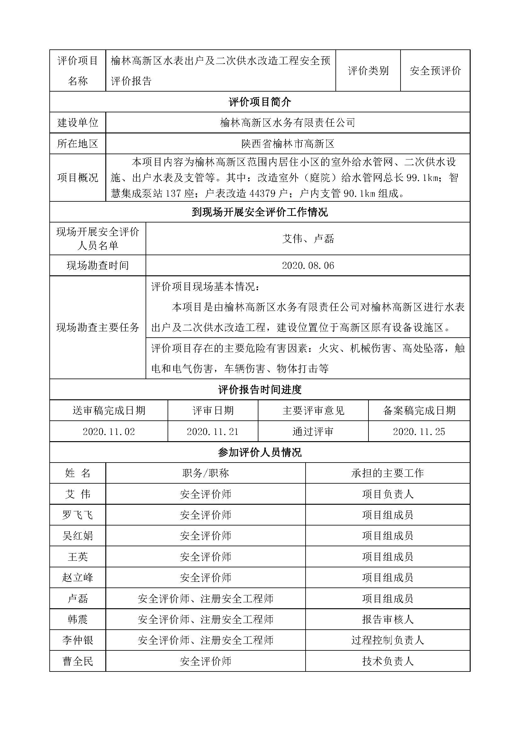 KLDAP[2020]-工貿(mào)-預(yù)-5 榆林高新區(qū)水務(wù)有限責(zé)任公司榆林高新區(qū)水表出戶及二次供水改造工程安全預(yù)評(píng)價(jià)