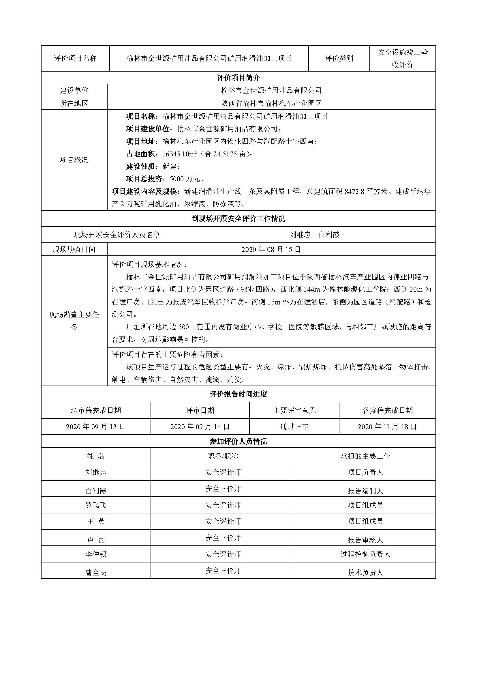 KLDAP[2020]-工貿(mào)-驗(yàn)-1 榆林市金世源礦用油品有限公司礦用潤(rùn)滑油加工項(xiàng)目安全驗(yàn)收評(píng)價(jià)