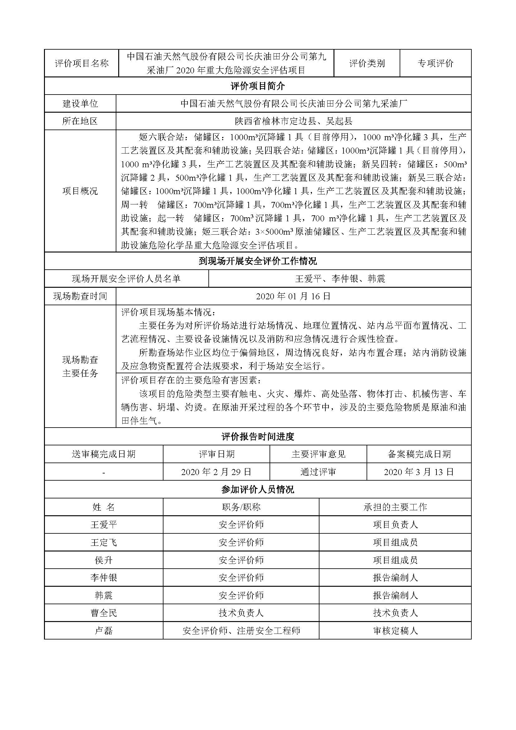 KLDAP[2020]-非煤-重-1 中國石油天然氣股份有限公司長慶油田分公司第九采油廠2020年危險化學(xué)品重大危險源安全評估