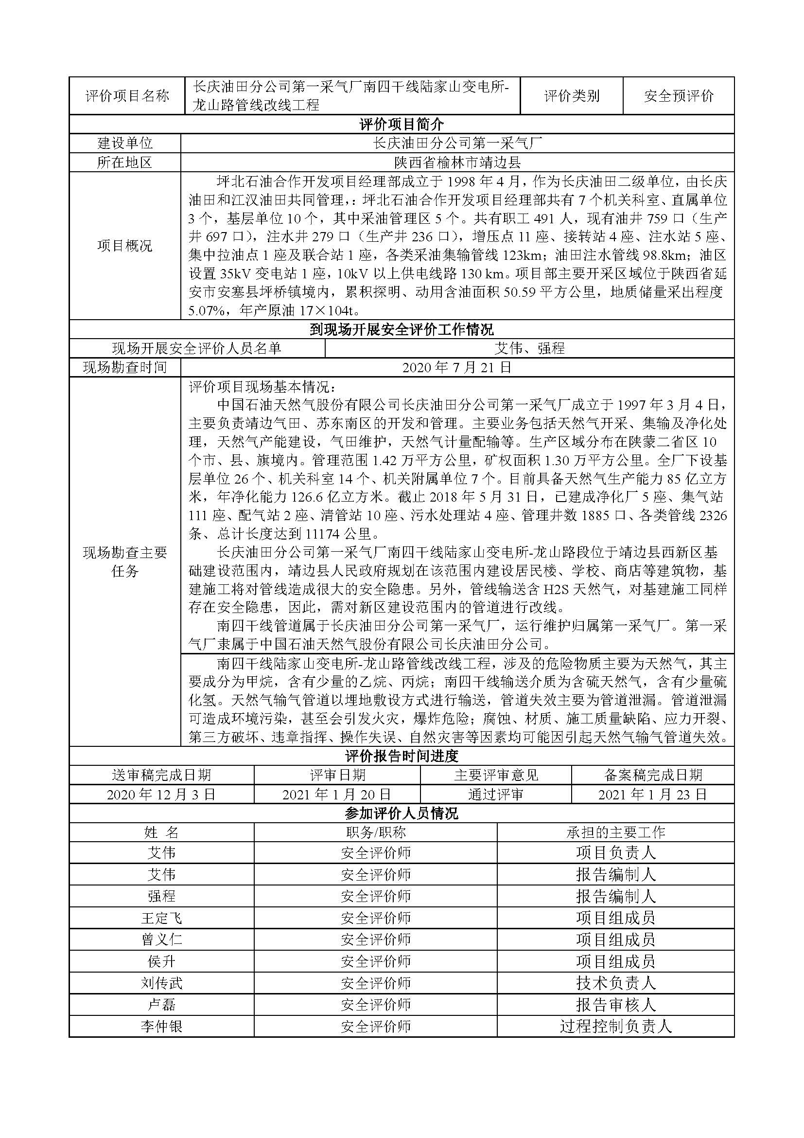 KLDAP[2020]-非煤-預(yù)-4 中國石油天然氣股份有限公司長慶油田分公司第一采氣廠南四干線陸家山變電所-龍山路管線改線工程安全預(yù)評價(jià)
