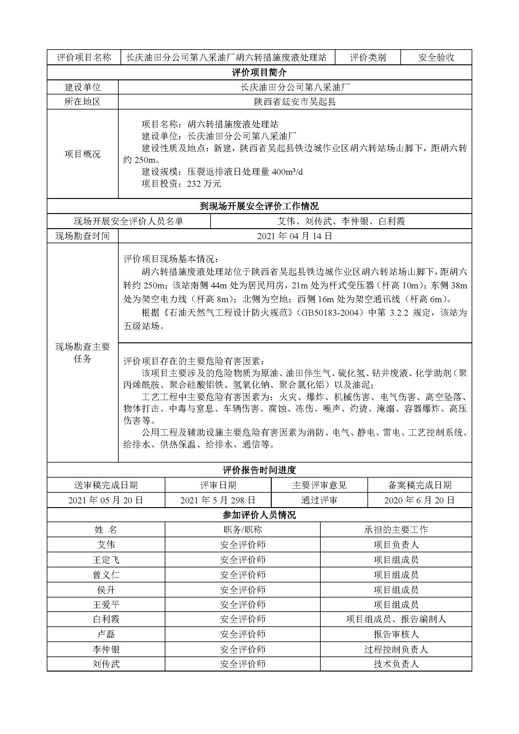 KLDAP[2020]-非煤-驗(yàn)-2 中國(guó)石油天然氣股份有限公司長(zhǎng)慶油田分公司第八采油廠學(xué)67-15措施廢液處理站安全驗(yàn)收評(píng)價(jià)