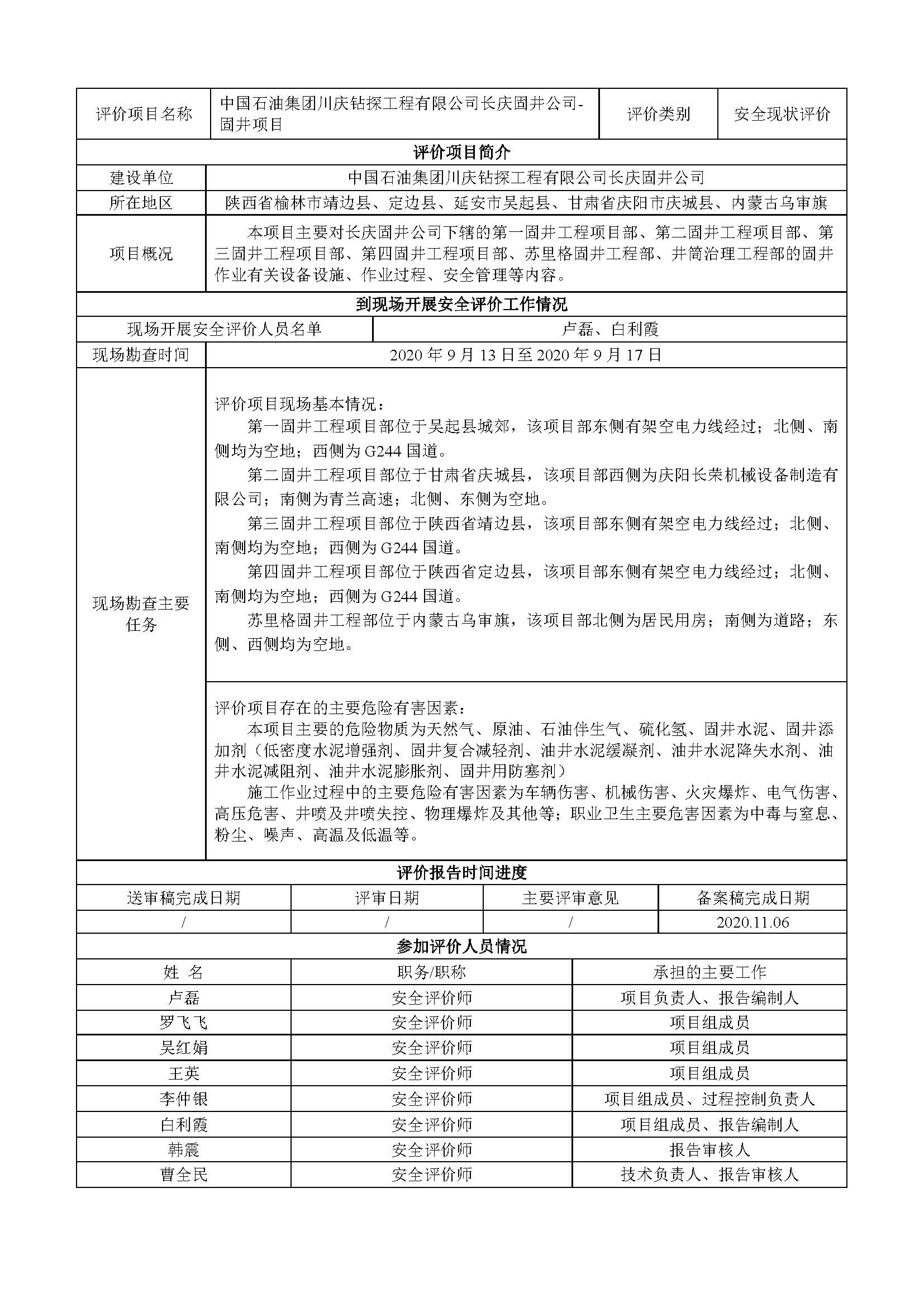 KLDAP[2020]-非煤-現(xiàn)-1 中國石油集團(tuán)川慶鉆探工程有限公司長慶固井公司-固井項目安全現(xiàn)狀評價