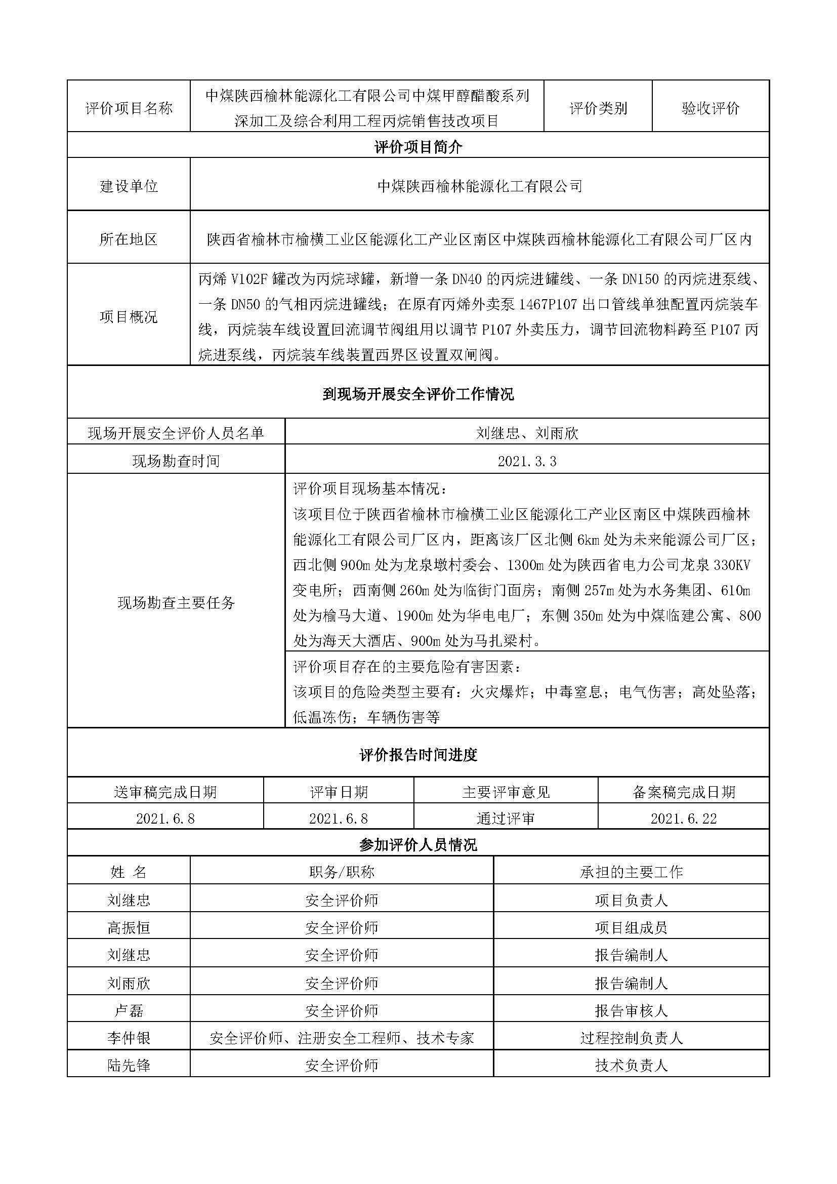 KLDAP[2021]-危化-驗(yàn)-2 中煤陜西榆林能源化工有限公司中煤甲醇醋酸系列深加工及綜合利用工程丙烷銷售技改項(xiàng)目安全設(shè)施竣工驗(yàn)收評(píng)價(jià)