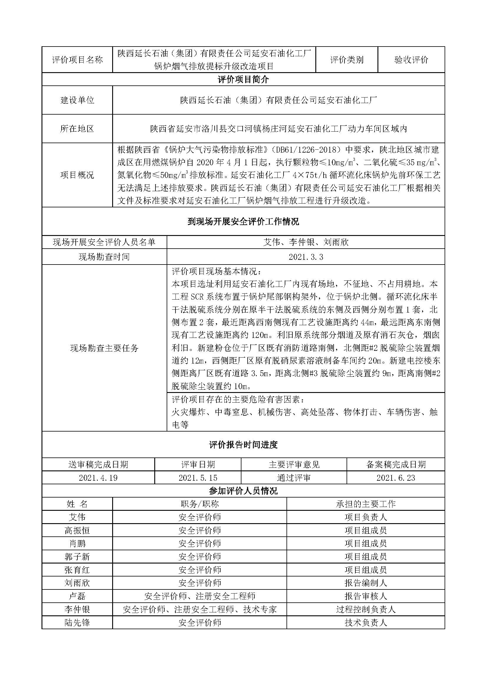 KLDAP[2021]-?;?驗(yàn)-1 延安石油化工廠鍋爐煙氣排放提標(biāo)升級(jí)改造項(xiàng)目安全驗(yàn)收評(píng)價(jià)