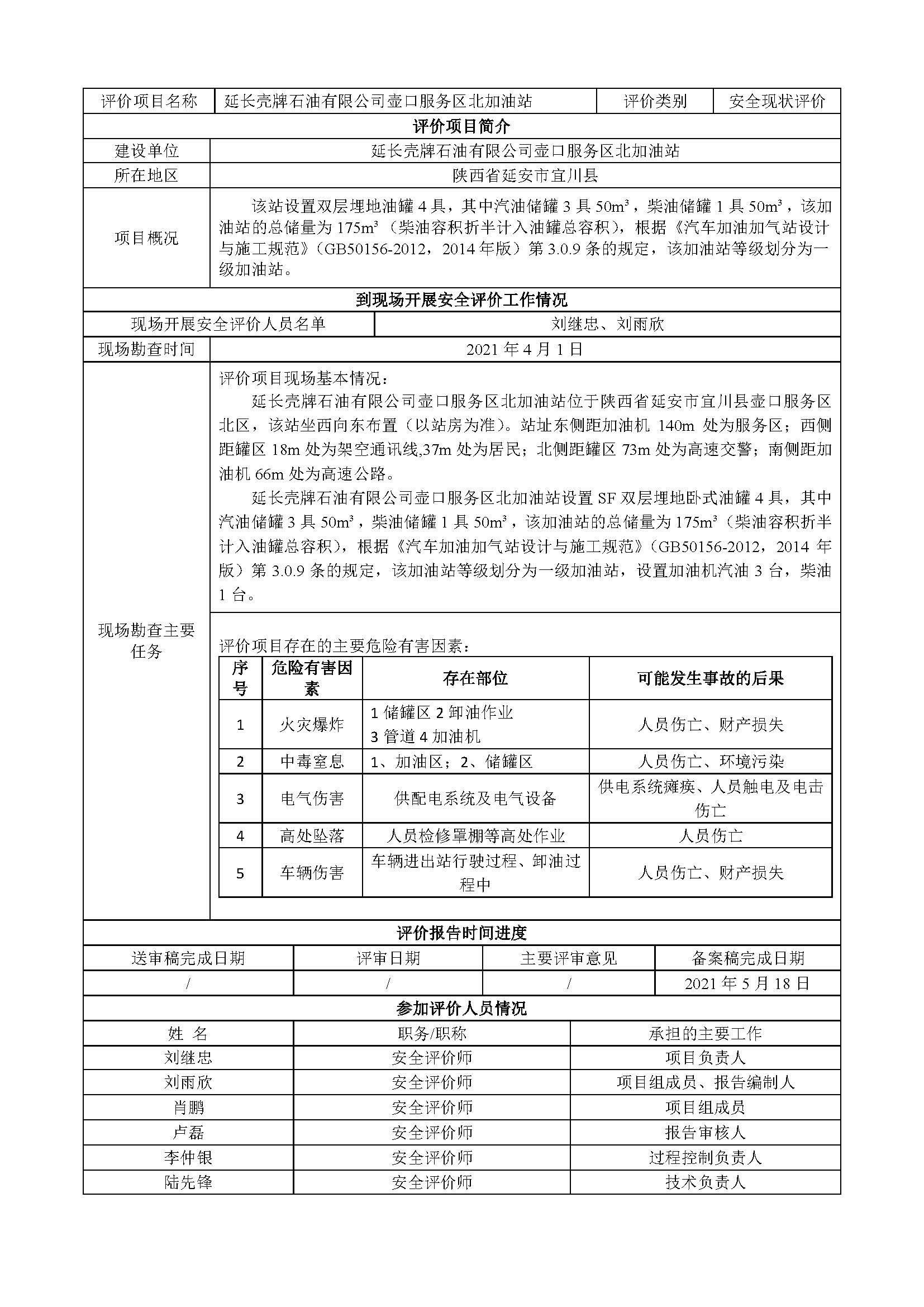 KLDAP[2021]-危化-現-3 延長殼牌石油有限公司壺口服務區(qū)北加油站安全現狀評價