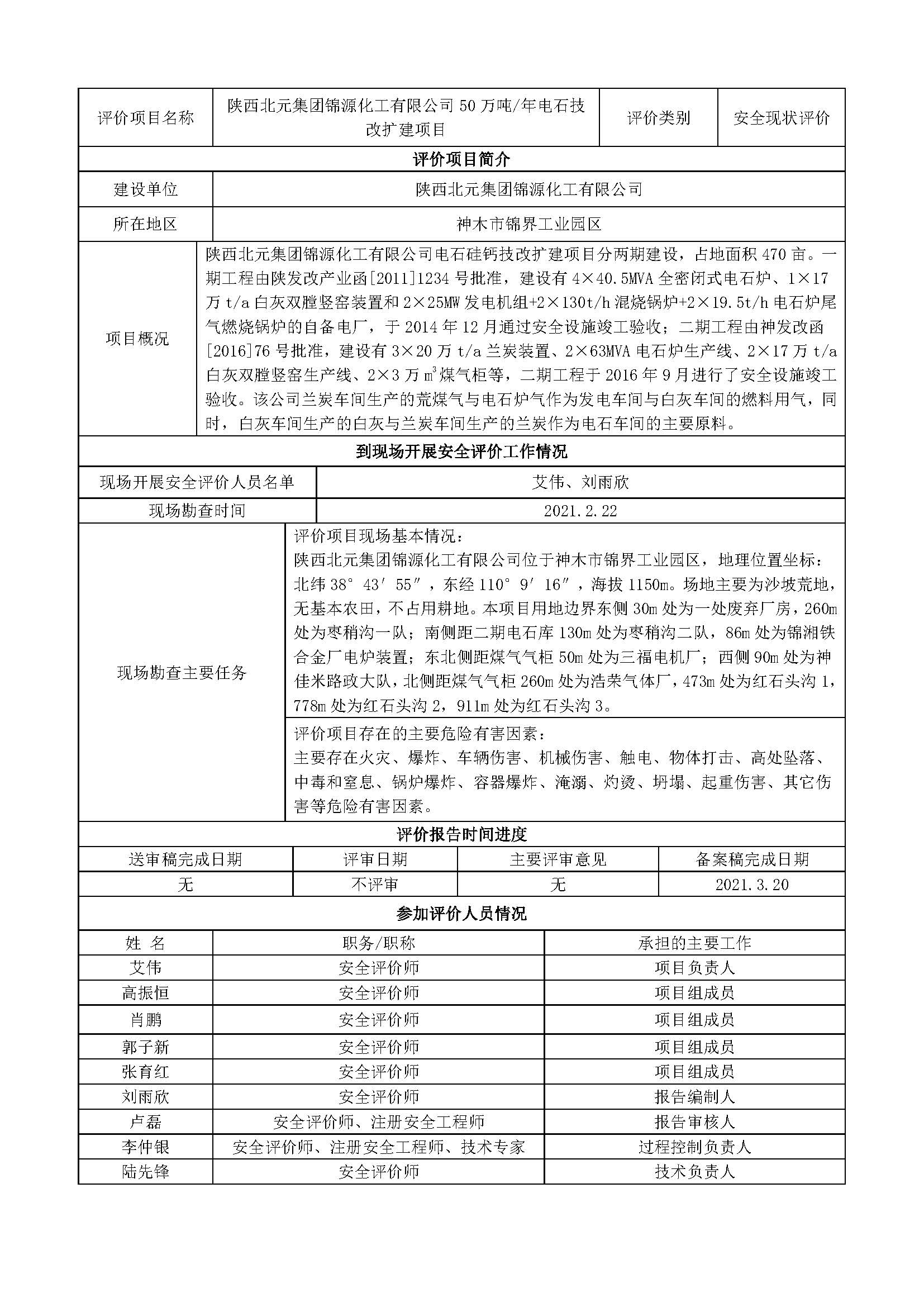 KLDAP[2021]-?;?現(xiàn)-2 陜西北元集團(tuán)錦源化工有限公司50萬噸年電石技改擴(kuò)建項(xiàng)目