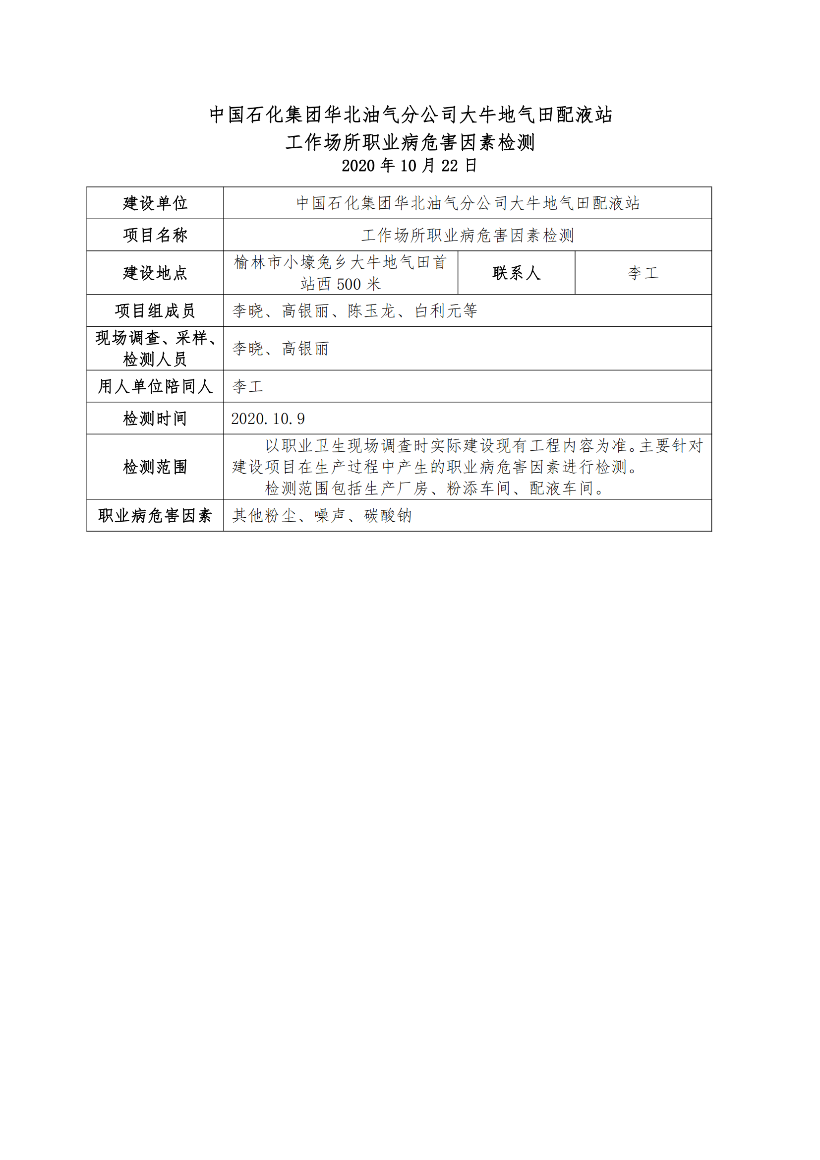 中國石化集團華北油氣分公司大牛地氣田配液站工作場所職業(yè)病危害因素檢測