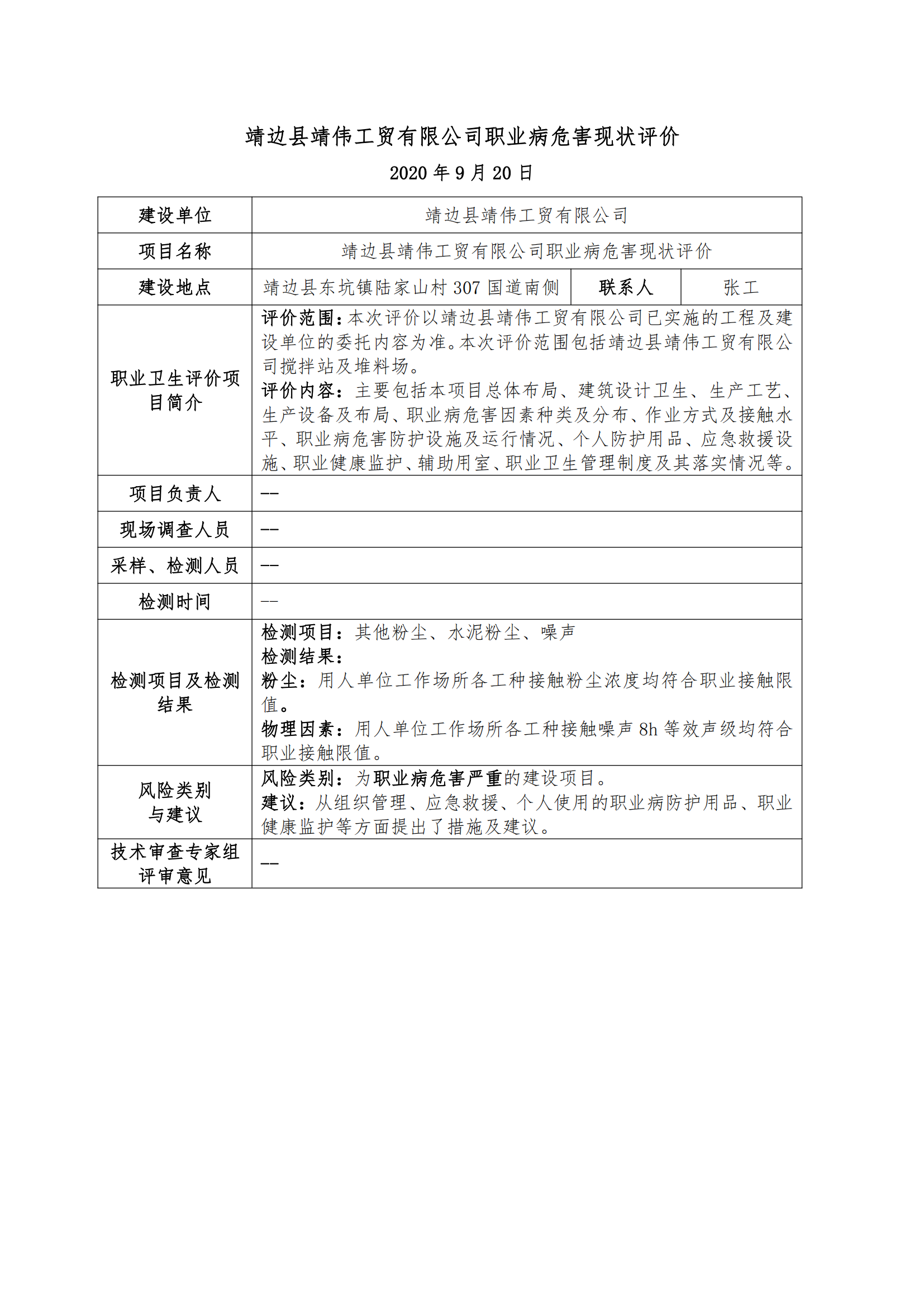 靖邊縣靖?jìng)スべQ(mào)有限公司職業(yè)病危害現(xiàn)狀評(píng)價(jià)
