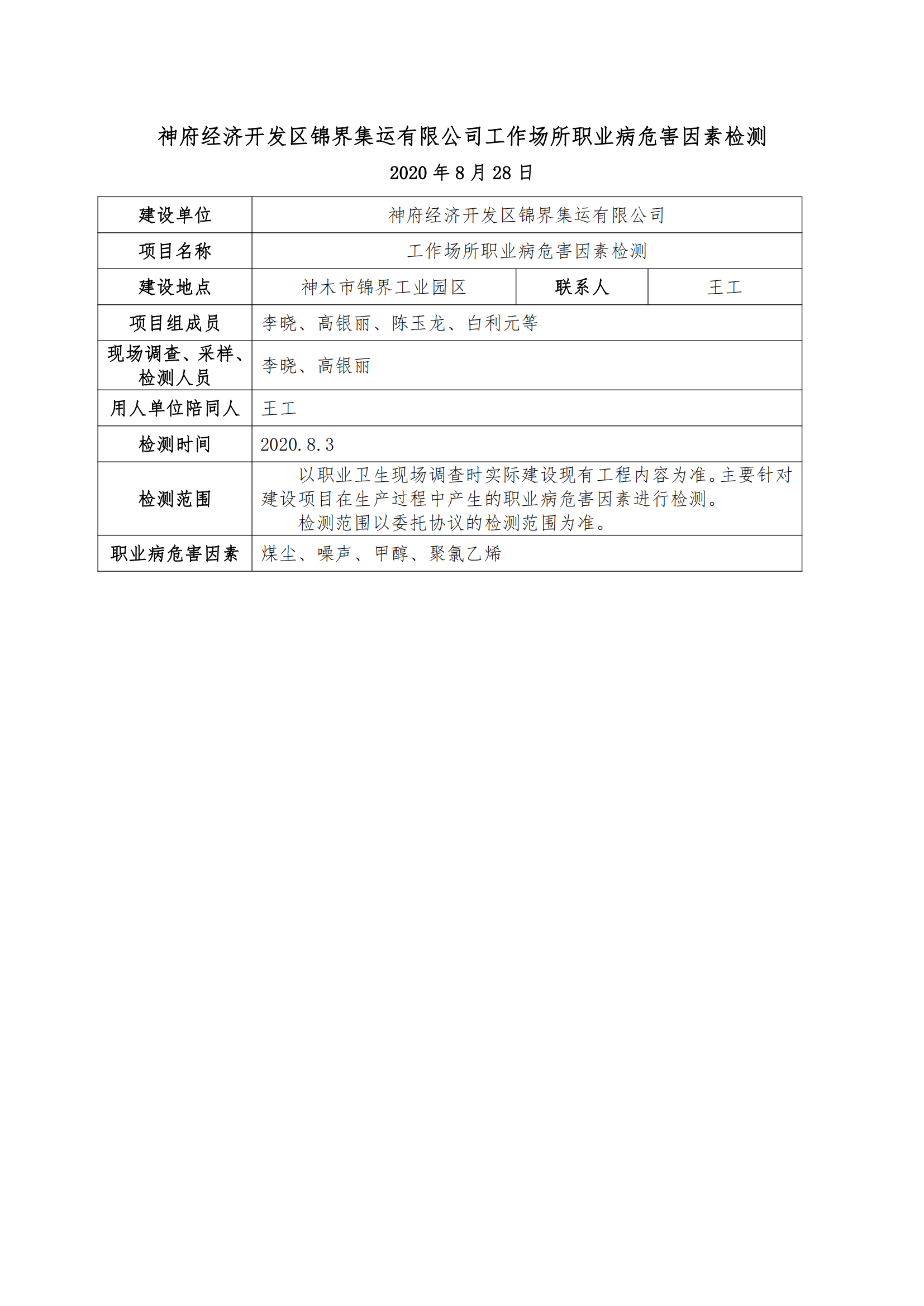 神府經(jīng)濟(jì)開發(fā)區(qū)錦界集運(yùn)有限公司工作場(chǎng)所職業(yè)病危害因素檢測(cè)