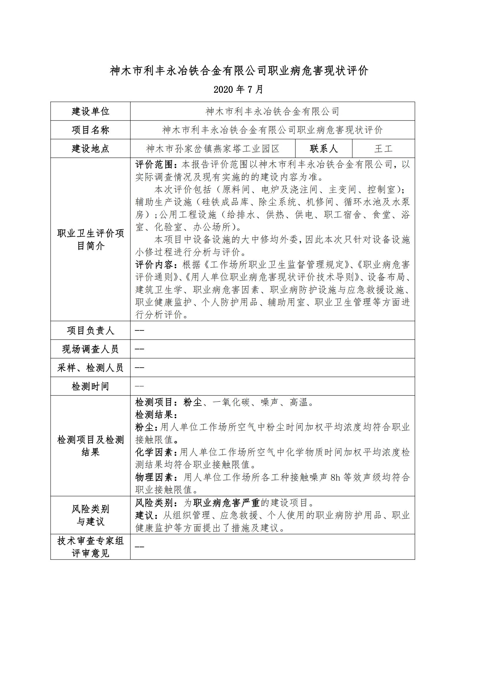 神木市利豐永冶鐵合金有限公司職業(yè)病危害現(xiàn)狀評價