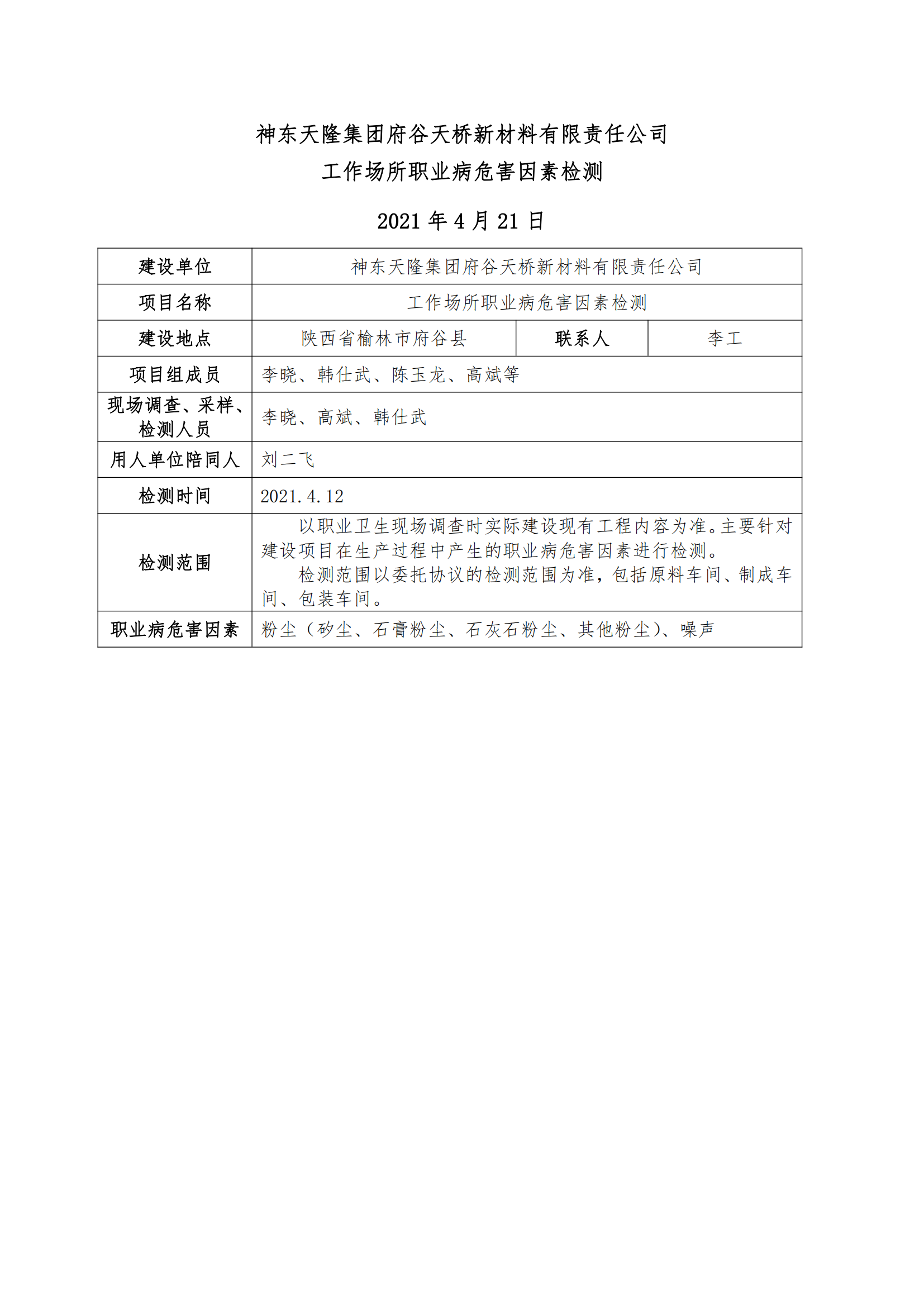 神東天隆集團(tuán)府谷天橋新材料有限責(zé)任公司工作場(chǎng)所職業(yè)病危害因素檢測(cè)