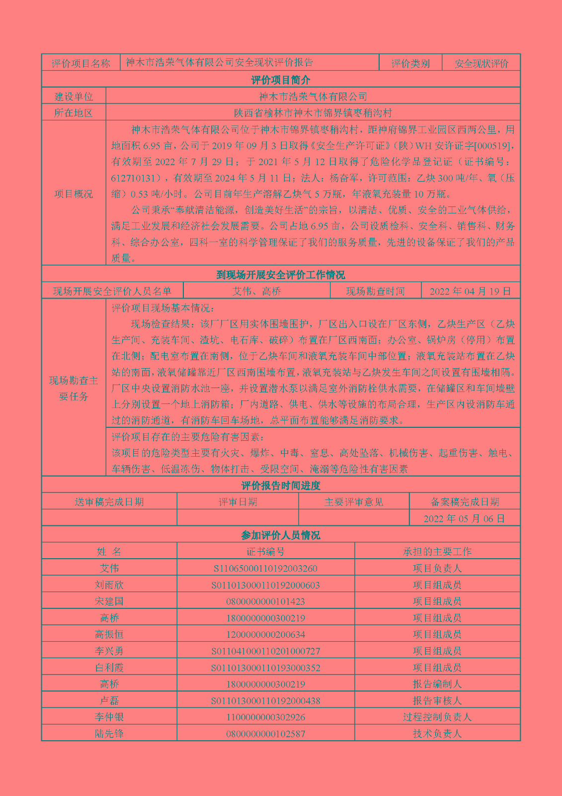 KLDAP[2022]-4.3 神木市浩榮氣體有限公司安全現(xiàn)狀評價