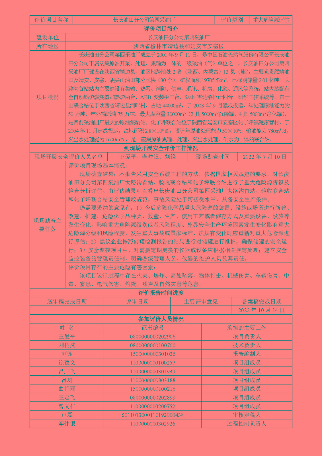 KLDAP[2022]-4.10 長慶油田分公司第四采油廠重大危險源評估
