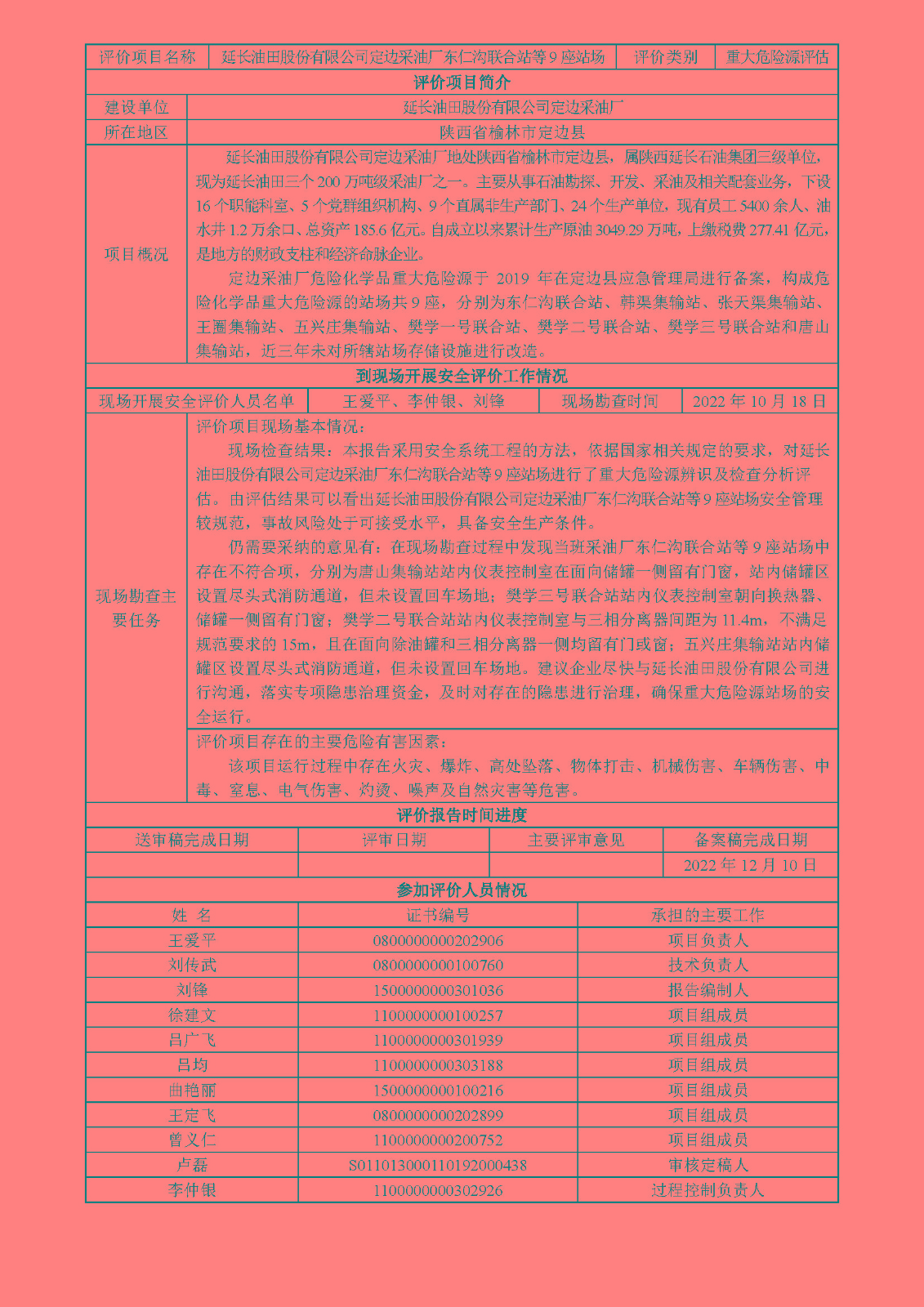 KLDAP[2022]-4.15 延長(zhǎng)油田股份有限公司定邊采油廠(chǎng)東仁溝聯(lián)合站等9座站場(chǎng)重大危險(xiǎn)源評(píng)估