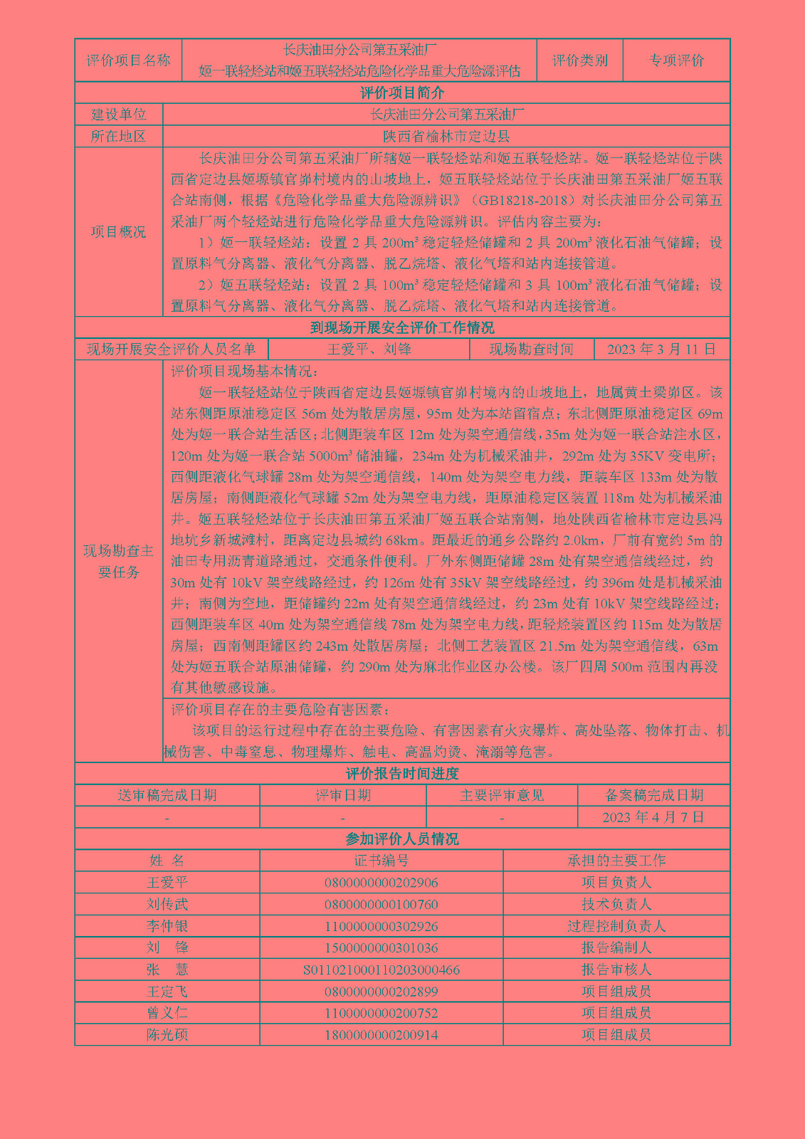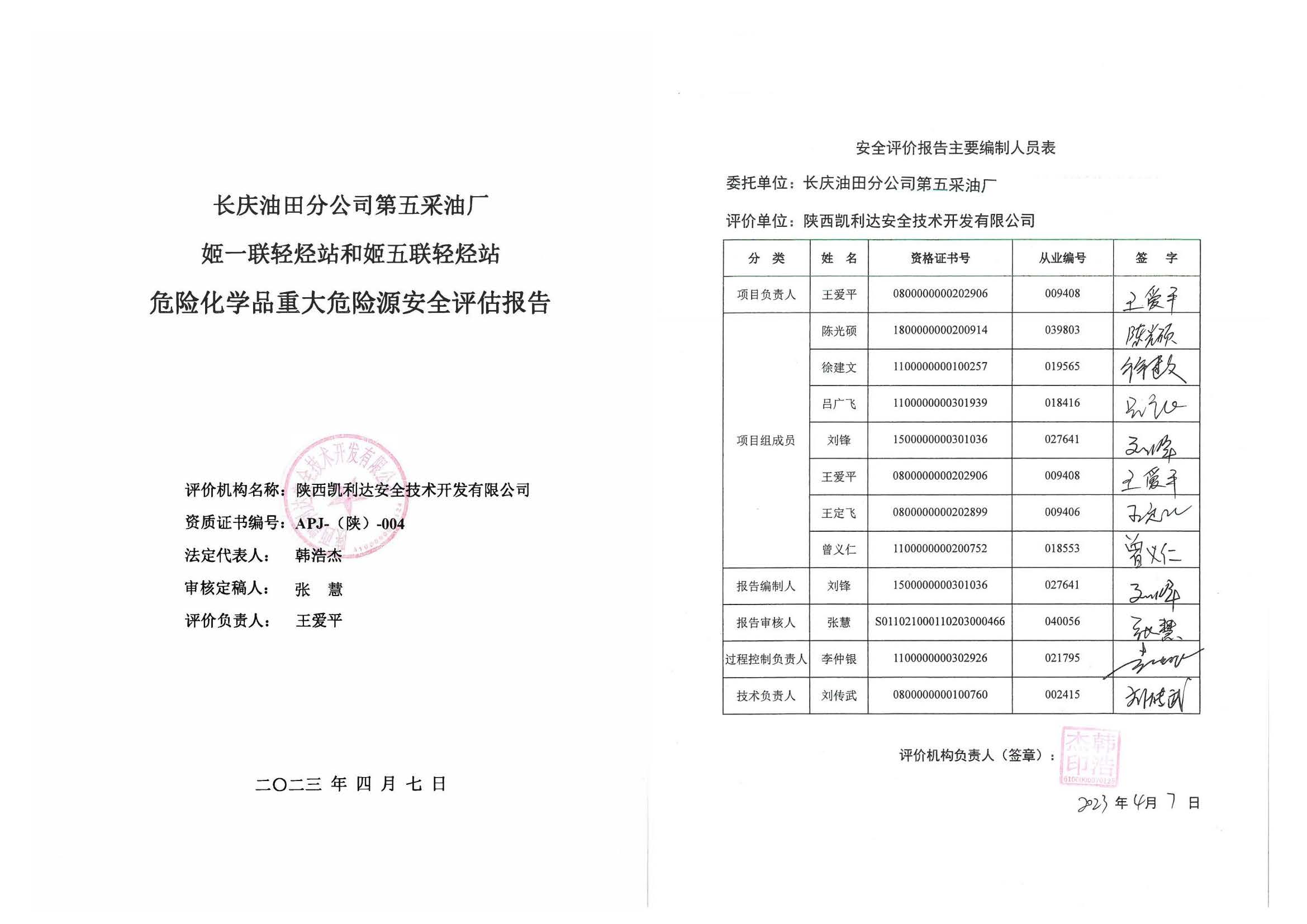 KLDAP[2023]-4.4 長慶油田分公司第五采油廠姬一聯(lián)和姬五聯(lián)輕烴站重大危險(xiǎn)源評估