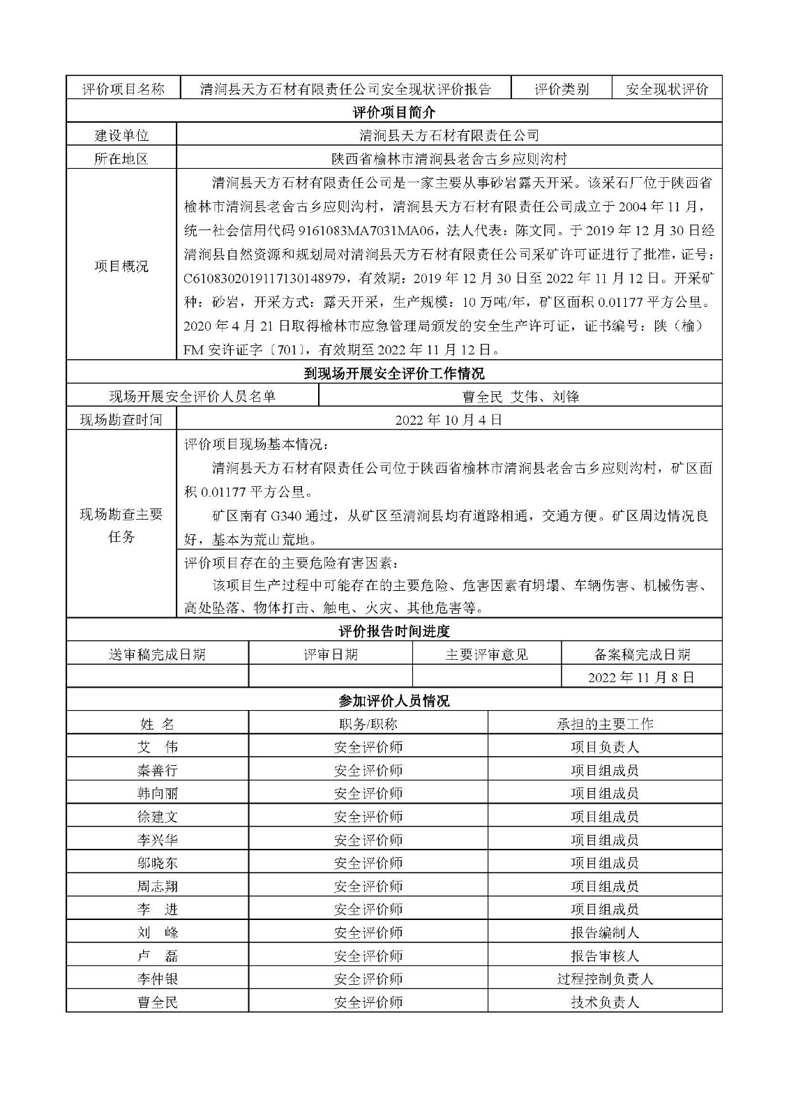 KLDAP[2022]-3.13 清澗縣天方石材有限責(zé)任公司安全現(xiàn)狀評(píng)價(jià)