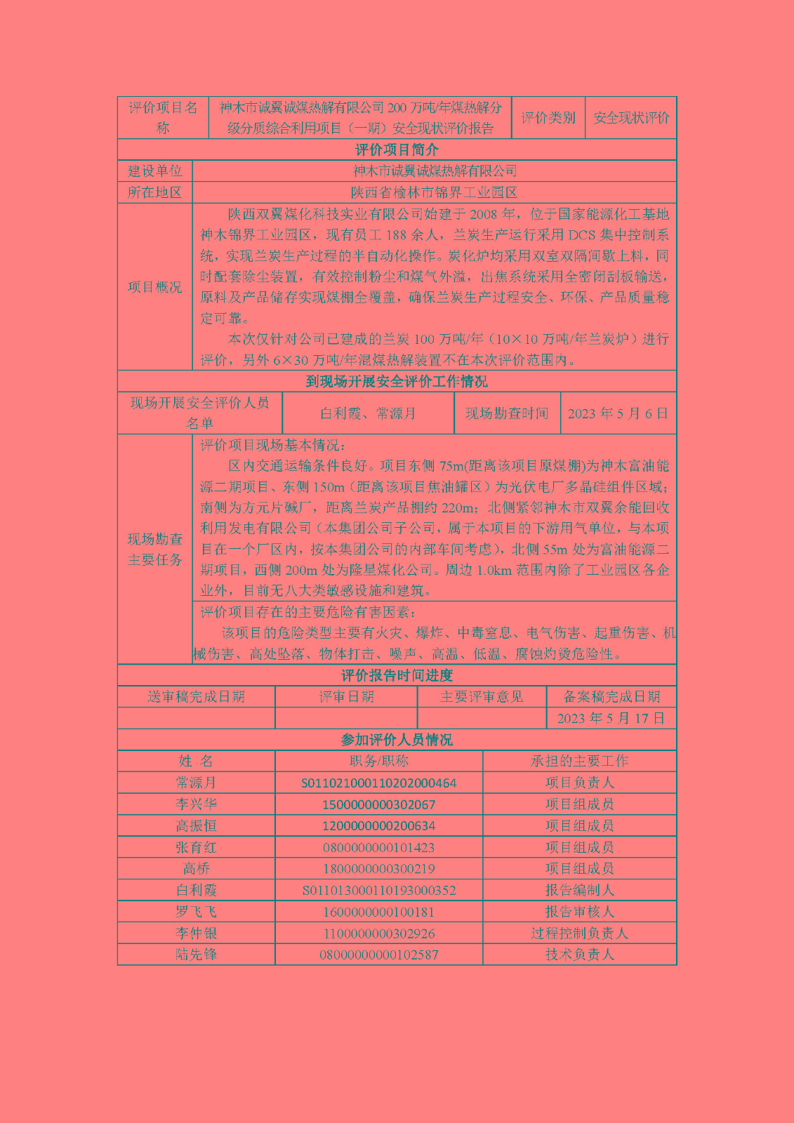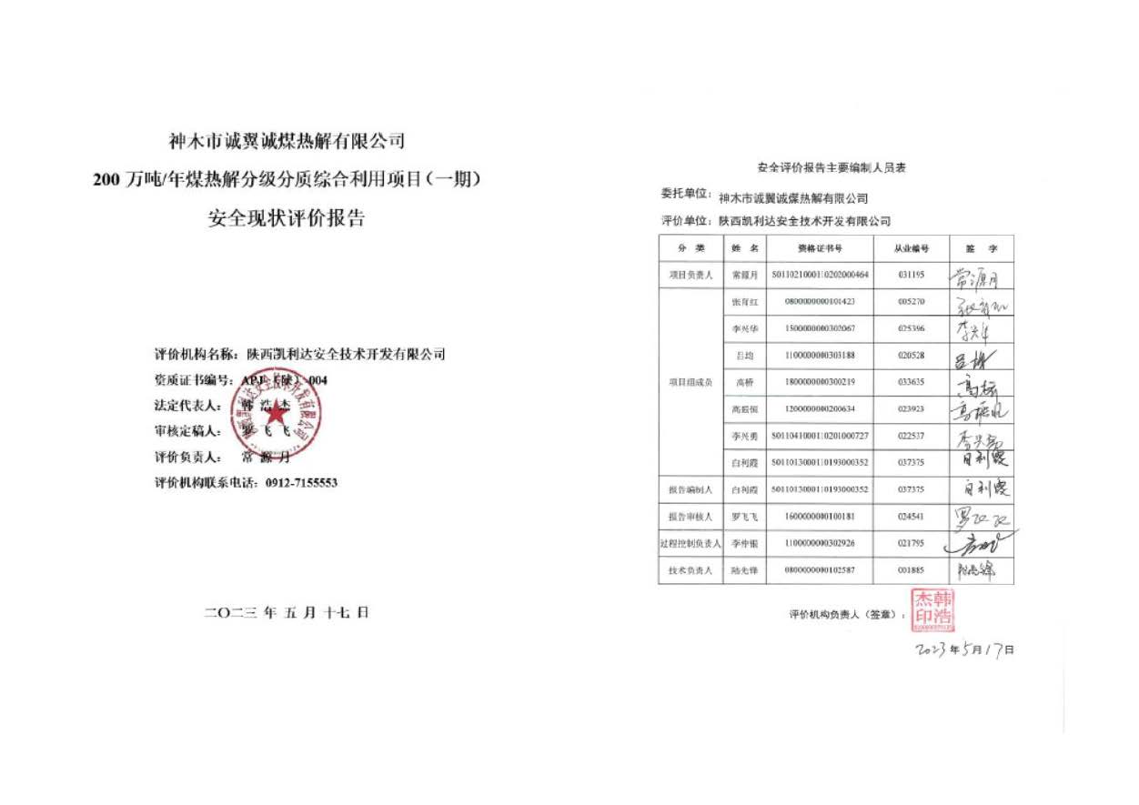 KLDAP[2023]-3.2 神木市誠(chéng)翼誠(chéng)煤熱解有限公司安全現(xiàn)狀評(píng)價(jià)