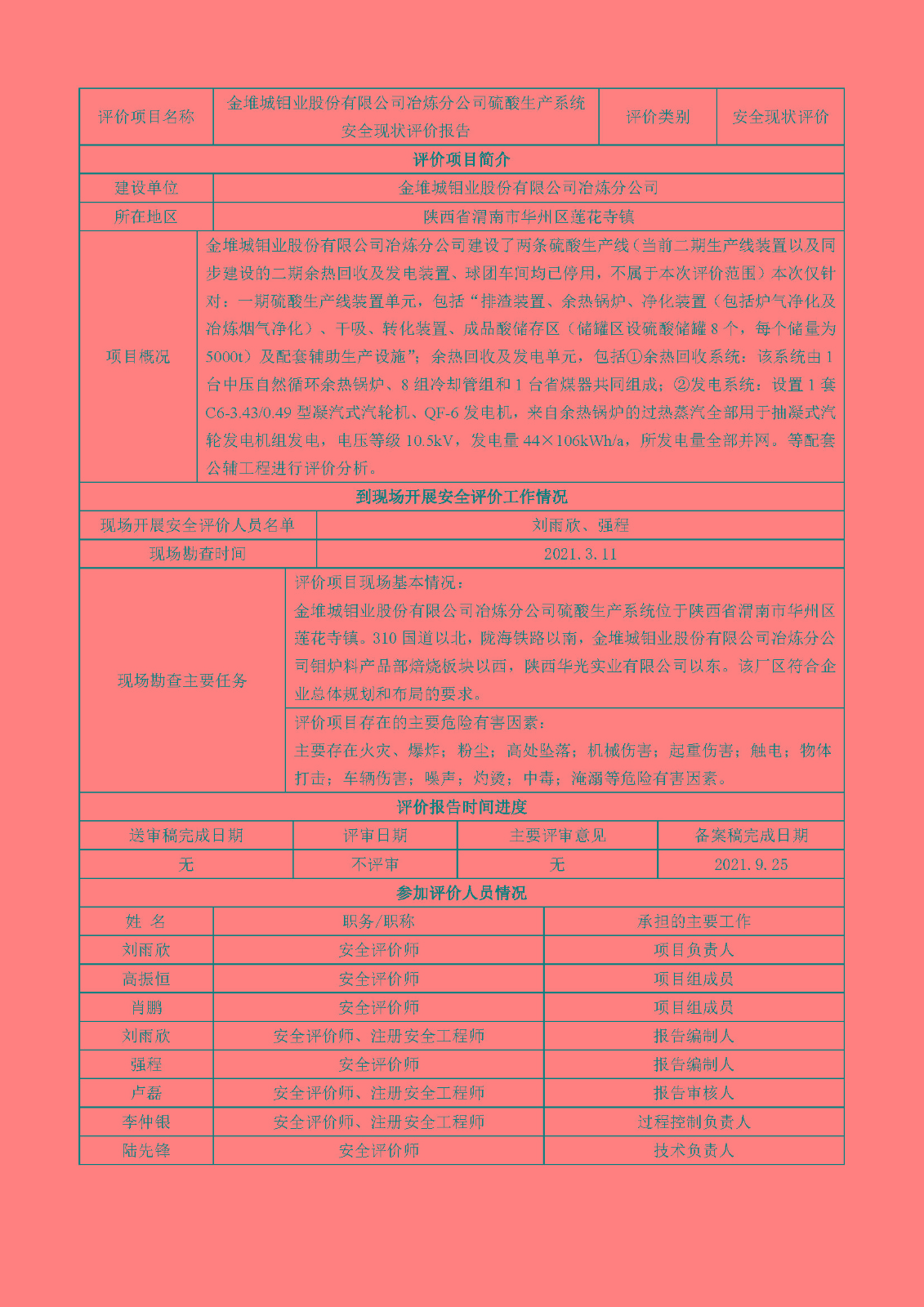 KLDAP[2021]-(現(xiàn))-11 金堆城鉬業(yè)股份有限公司礦冶分公司硫酸廠硫酸生產(chǎn)項(xiàng)目安全現(xiàn)狀評(píng)價(jià)
