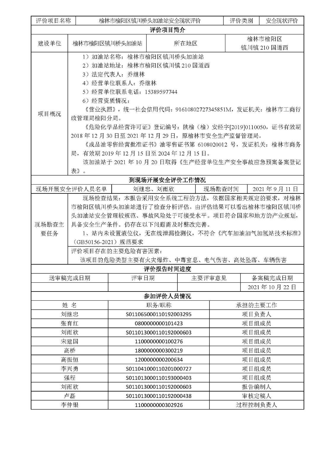 KLDAP[2021]-(現(xiàn))-14 榆林市榆陽(yáng)區(qū)鎮(zhèn)川橋頭加油站安全現(xiàn)狀