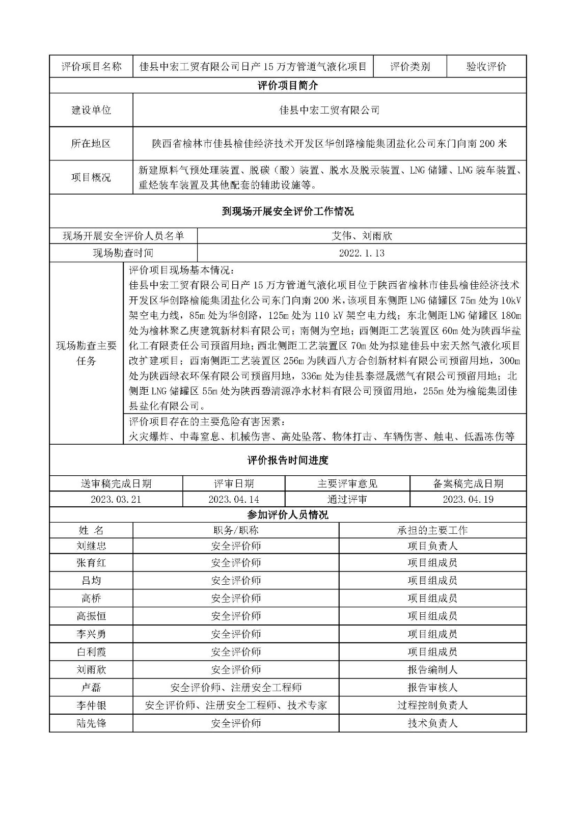 KLDAP-[2021]-2.7 佳縣中宏工貿(mào)有限公司日產(chǎn)15萬方管道氣液化項目安全驗收評價