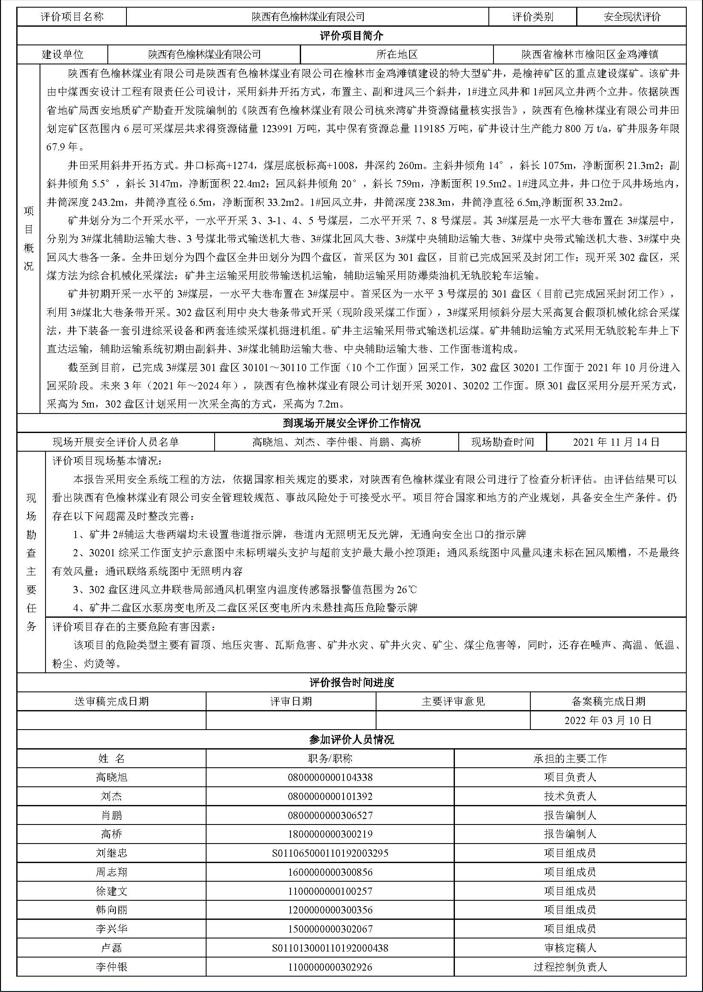 KLDAP[2022]-煤炭-現(xiàn)-1 陜西有色榆林煤業(yè)有限公司安全現(xiàn)狀評(píng)價(jià)