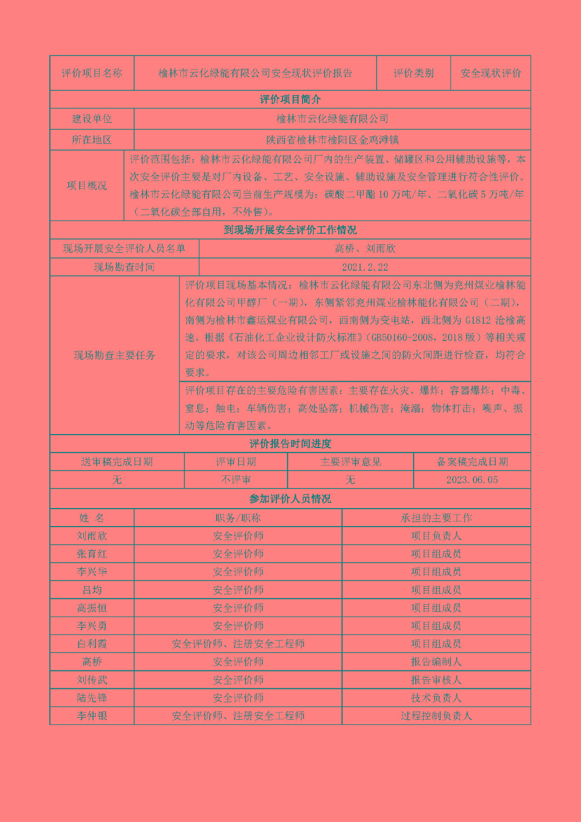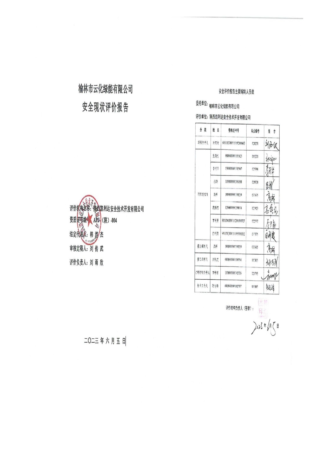 KLDAP[2023]-2.6 榆林市云化綠能有限公司安全現(xiàn)狀評價