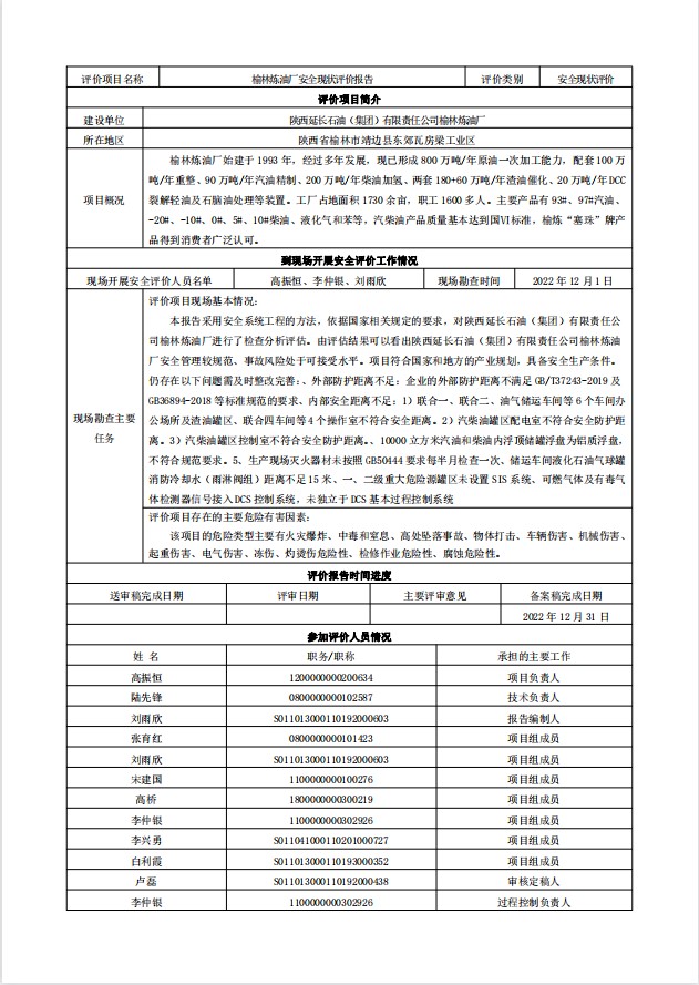 KLDAP[2023]-2.7 榆林煉油廠安全現(xiàn)狀