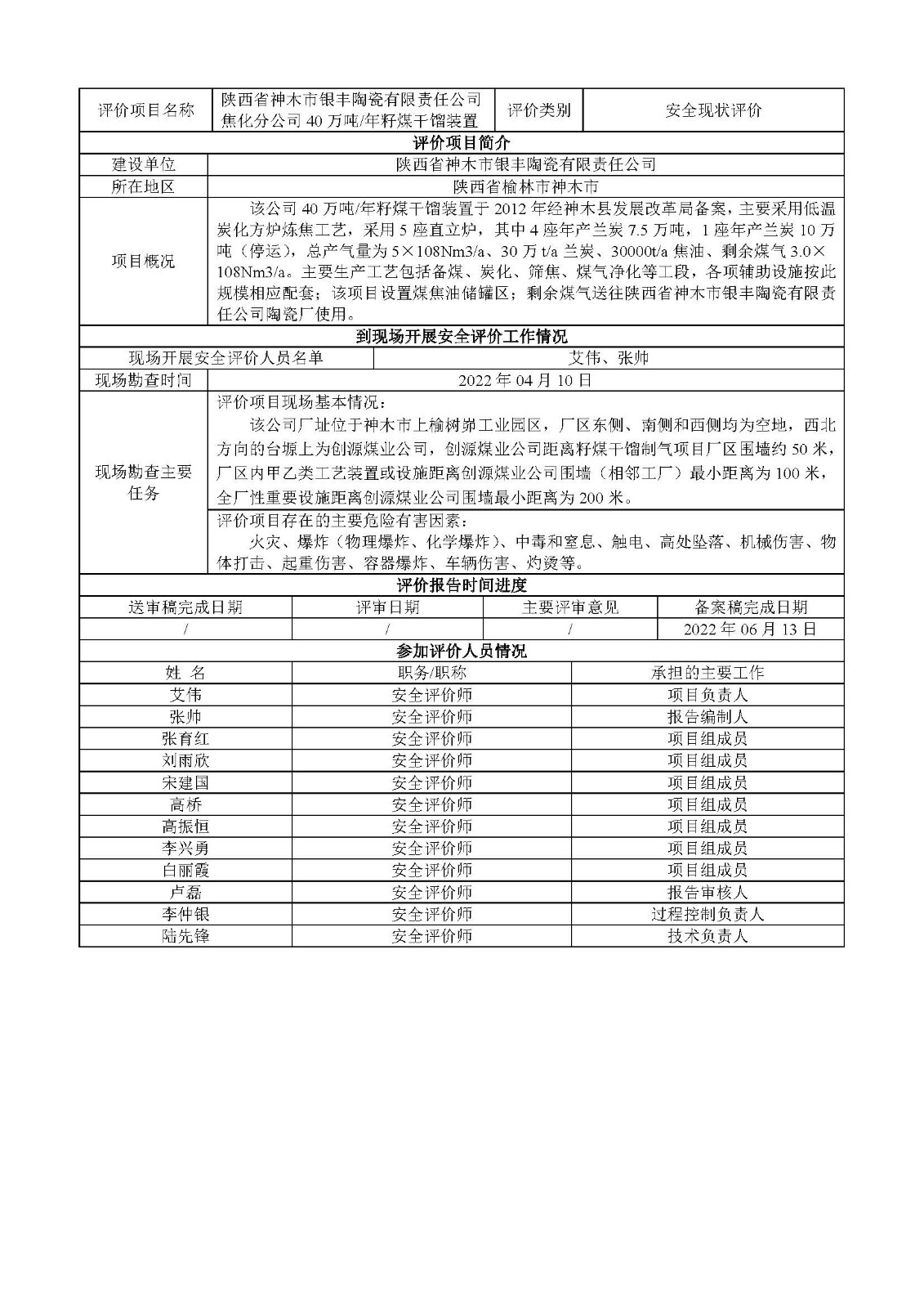 KLDAP[2022]-1.3 陜西神木銀豐陶瓷有限責任公司焦化分公司40萬噸/年籽煤干餾裝置安全現(xiàn)狀