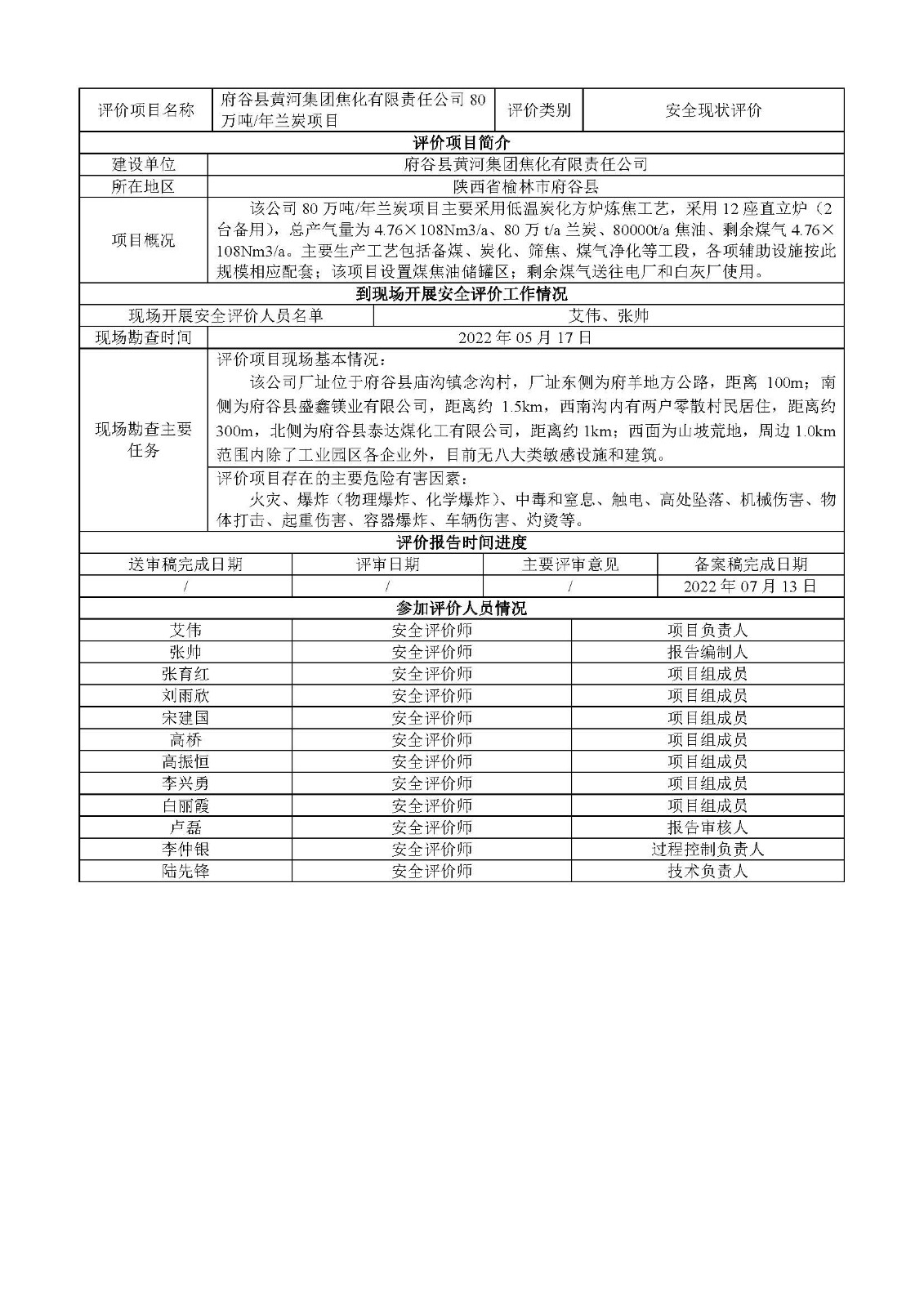 KLDAP[2022]-1.4 府谷縣黃河集團(tuán)焦化有限責(zé)任公司80萬(wàn)噸/年蘭炭項(xiàng)目安全現(xiàn)狀