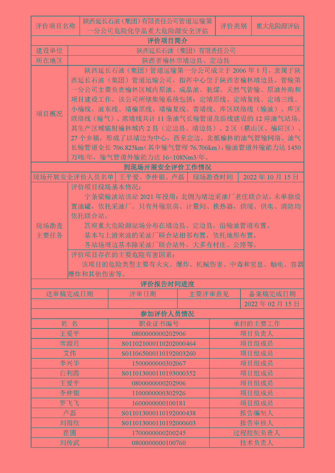 KLDAP[2022]-1.10 陜西延長(zhǎng)石油(集團(tuán))有限責(zé)任公司管道運(yùn)輸?shù)谝环止局卮笪kU(xiǎn)源安全評(píng)估