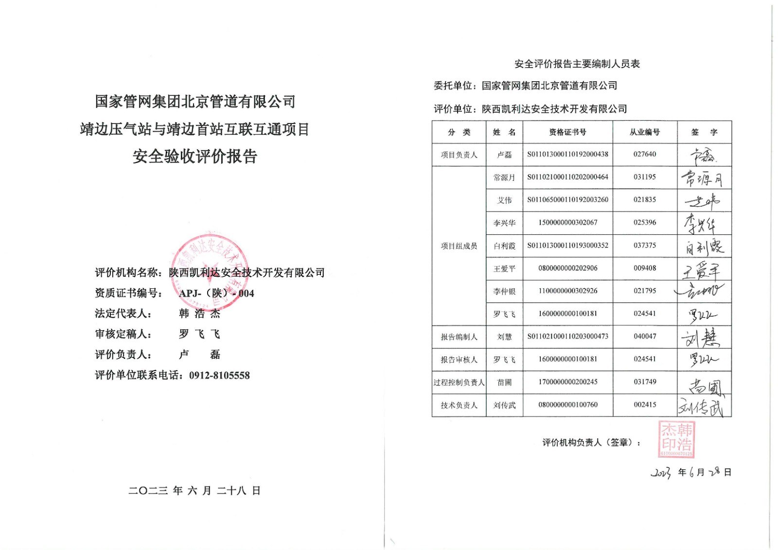 KLDAP[2023]-1.5 國(guó)家管網(wǎng)集團(tuán)北京管道有限公司靖邊壓氣站與靖邊首站互聯(lián)互通項(xiàng)目安全設(shè)施竣工驗(yàn)收評(píng)價(jià)