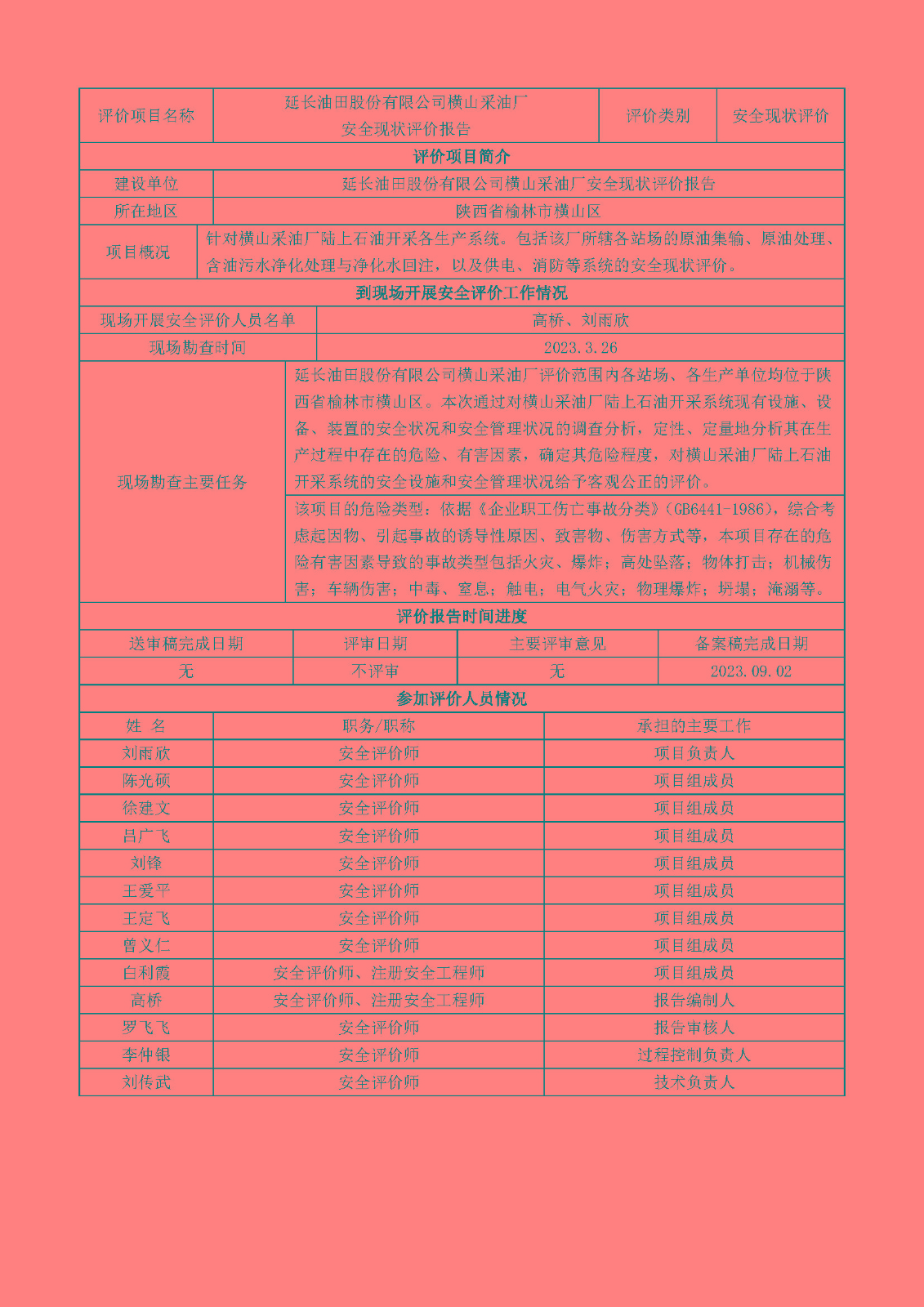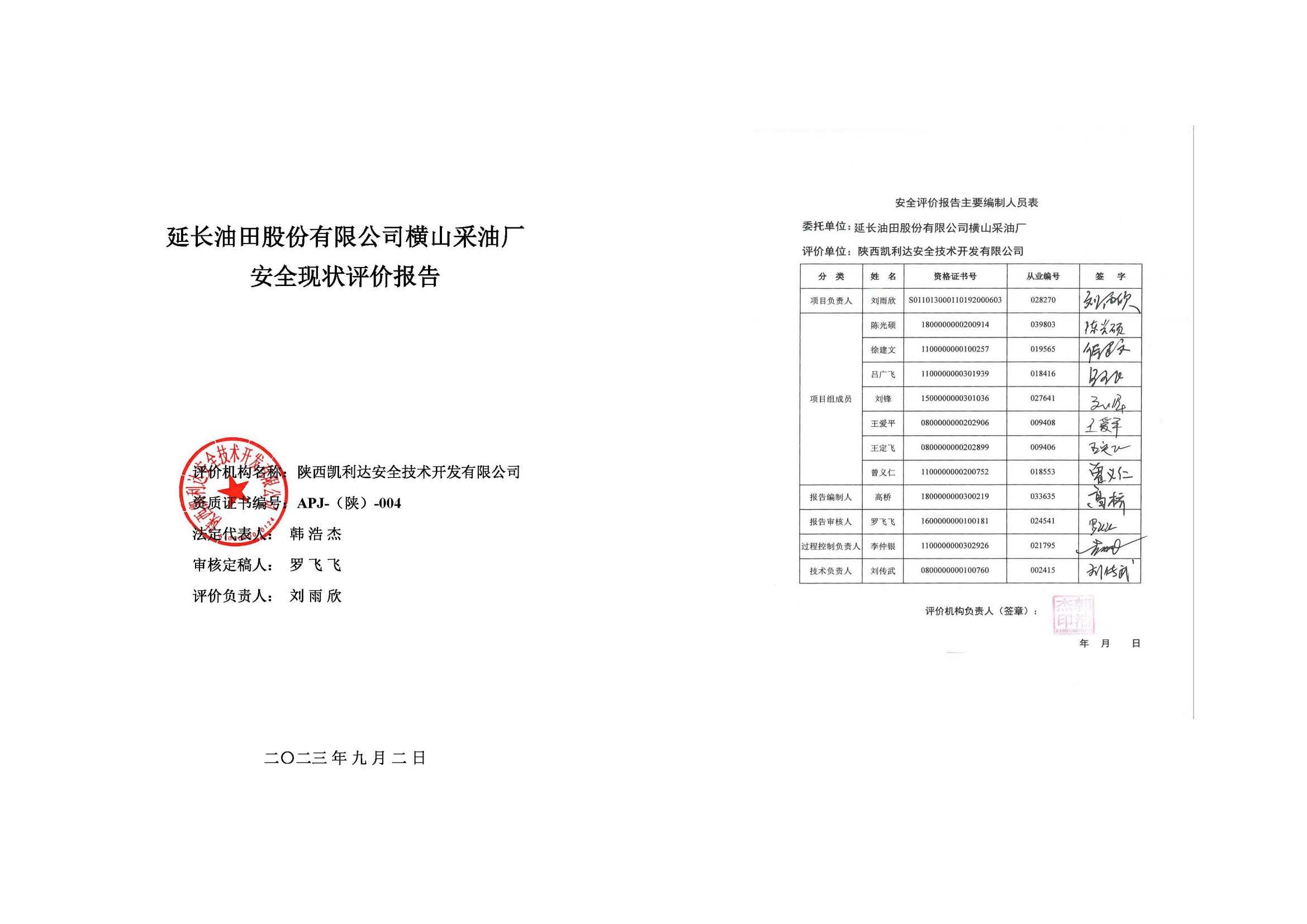 延長(zhǎng)油田股份有限公司橫山采油廠安全現(xiàn)狀評(píng)價(jià)-網(wǎng)上公示