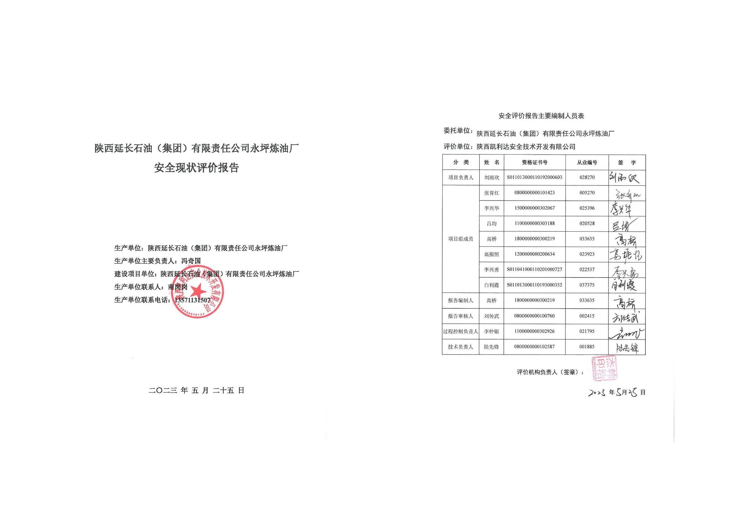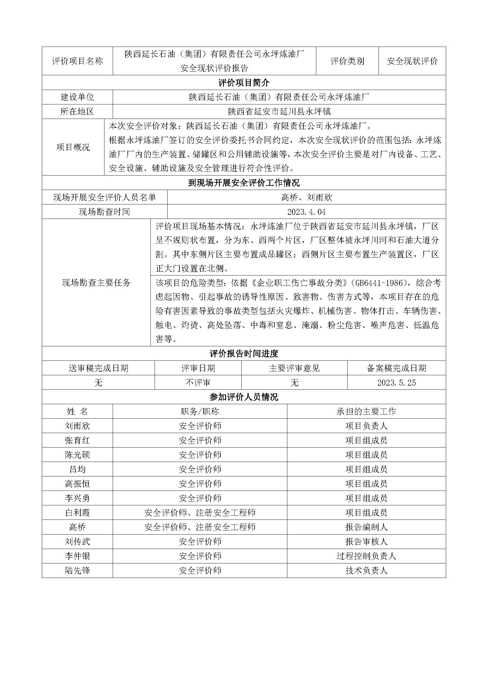 KLDAP-[2023]-2.9陜西延長(zhǎng)石油(集團(tuán))有限責(zé)任公司永坪煉油廠安全現(xiàn)狀評(píng)價(jià)-網(wǎng)上公示