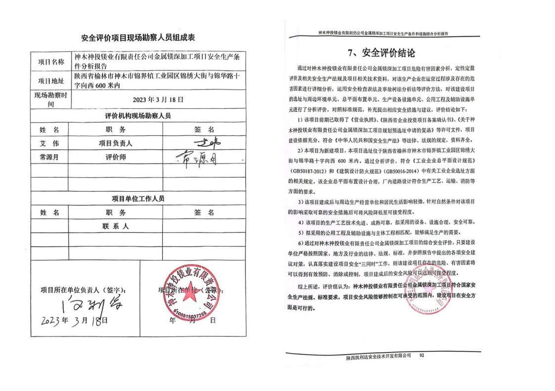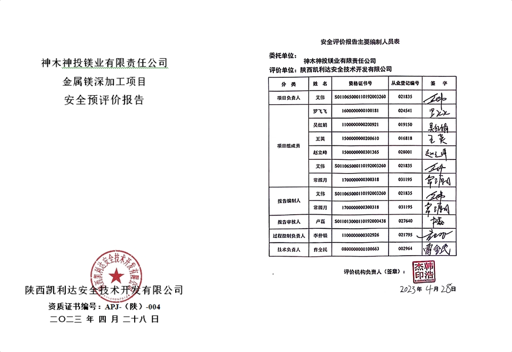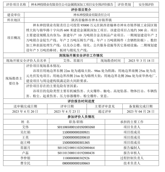 KLDAP[2023]-3.4神木神投鎂業(yè)有限責(zé)任公司金屬鎂深加工項(xiàng)目安全預(yù)評價報告-網(wǎng)上公示