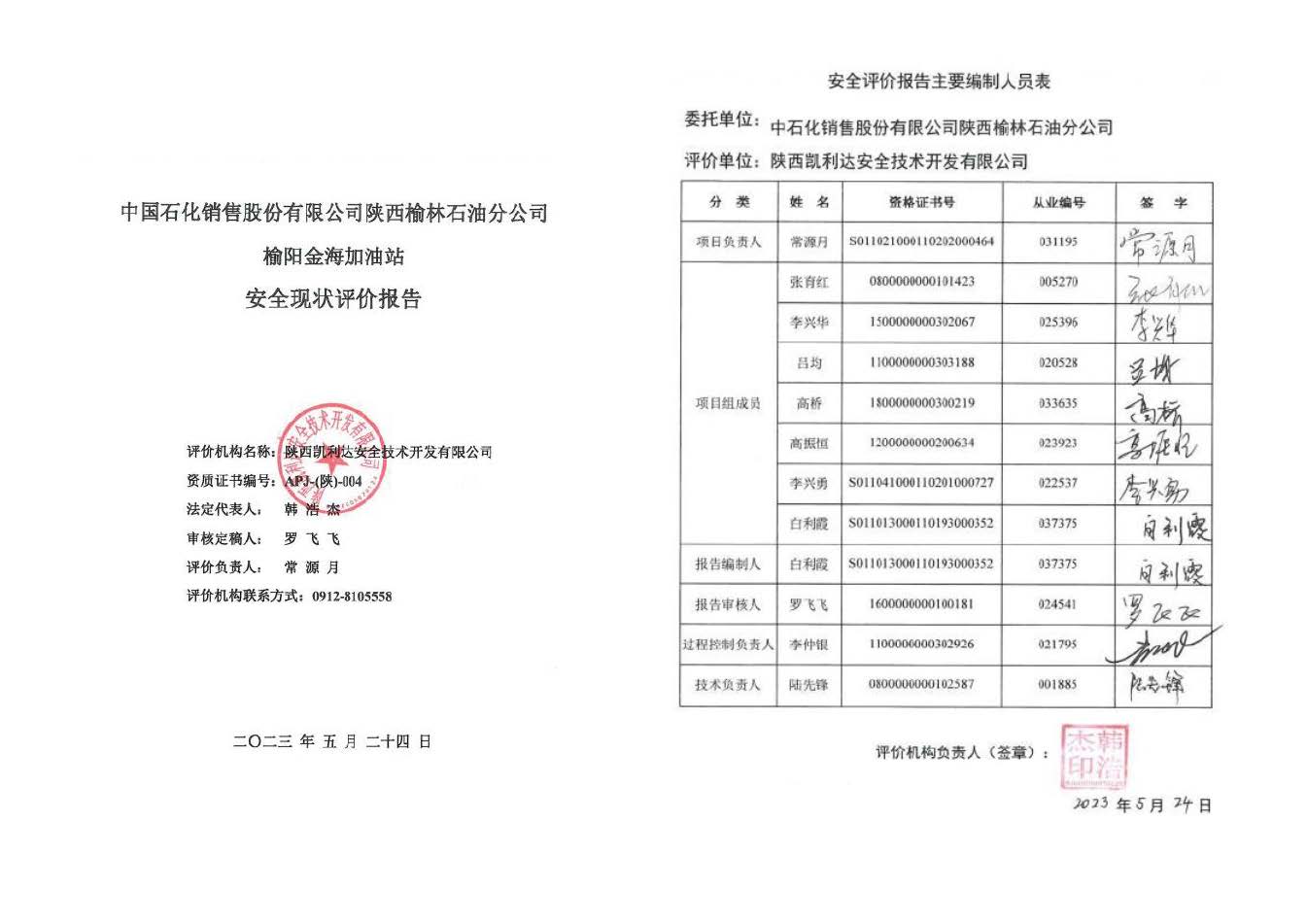 KLDAP[2023]-3.7中國(guó)石化銷售股份有限公司陜西榆林石油分公司榆陽(yáng)金海加油站安全現(xiàn)狀評(píng)價(jià)報(bào)告-公示