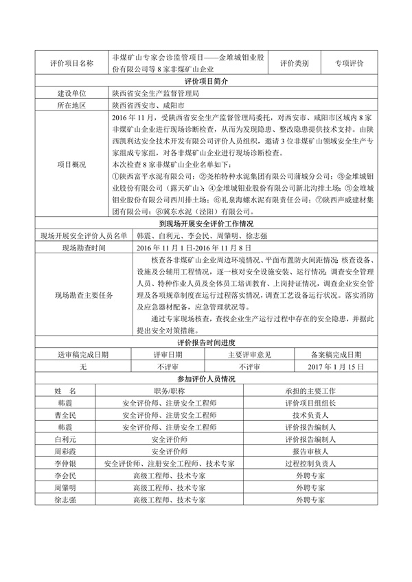 非煤礦山專家會診監(jiān)管項目——金堆城鉬業(yè)股份有限公司等8家非煤